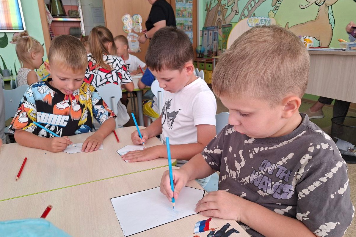Группа «Бусинка» с увлечением мастерила патриотичные закладки, украшая их русскими орнаментами и предметами быта, символами государства. Группа «Полянка» трудилась над созданием праздничной гирлянды «22 августа – День флага», а ребята из группы «Улыбка» кропотливо и аккуратно создавали свои поделки, украшая лентами российского флага и другими составляющими. В процессе творчества дети рассказали о своих представлениях значения цветов флага, упомянули, где можно флаг увидеть своими глазами и с весельем разгадывали «Белые», «Синие» и «Красные» загадки.