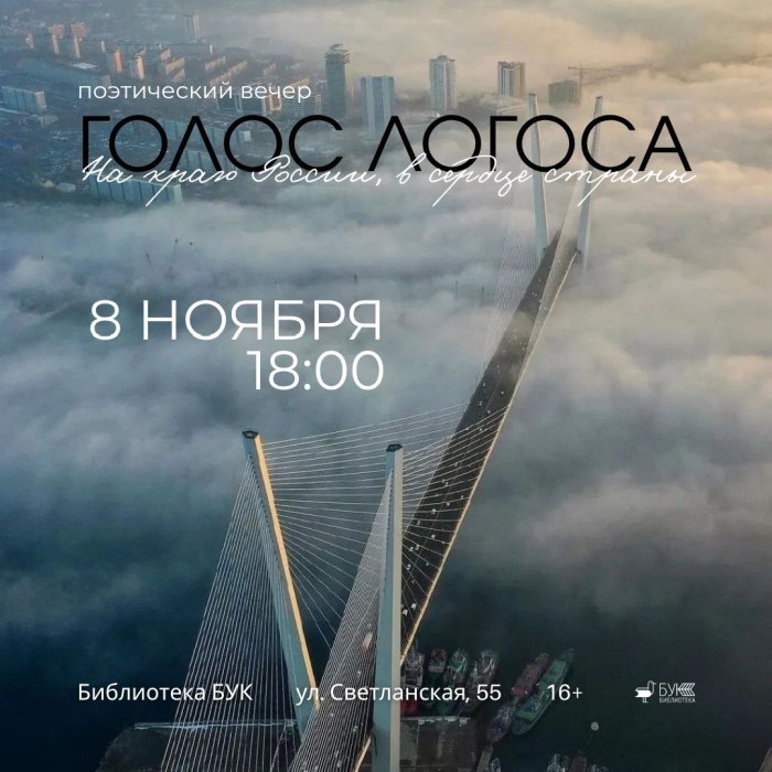Каждый гость вечера сможет окунуться в атмосферу поэзии, вдохновлённой уникальным духом Приморского края. Не только услышать голоса местных поэтов, чьи строки пропитаны соленым ветром, хвойными ароматами и светом дальневосточного солнца, для которых Приморье — источник вдохновения, но и разделить свои чувства, прочитав собственные или полюбившиеся стихи о Родине — большой или малой, о единстве, о море и тайге.