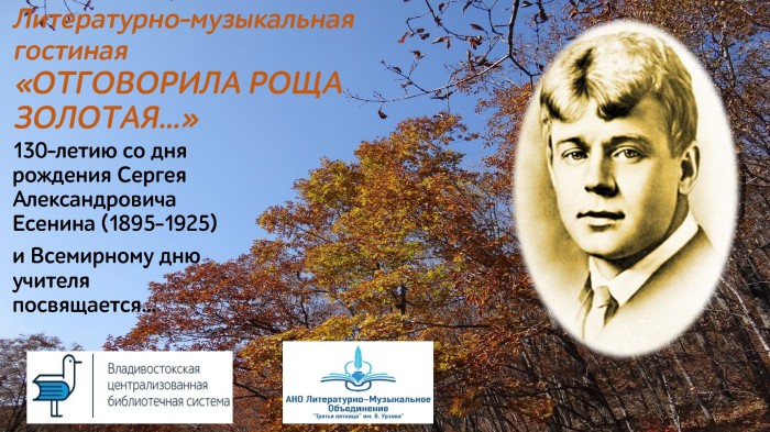 Литературно-музыкальная гостиная посвящена 130-летию Сергея Александровича Есенина и Всемирному дню учителя.