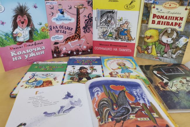 На выставке представлены сборники произведений для дошкольного и младшего школьного возраста: «Сказки про зверят», «Я веревочку верчу», «Солнышко на память» — замечательно иллюстрированный сборник поучительных сказок.