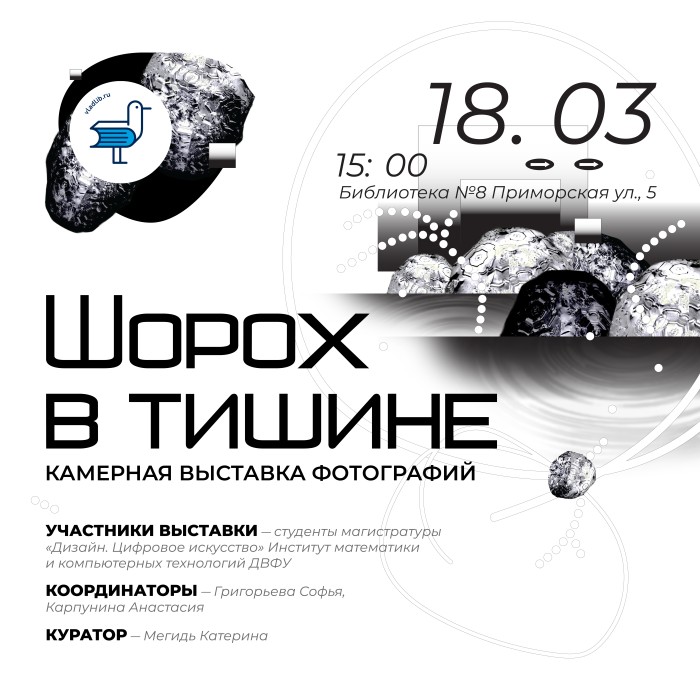На открытии экспозиции у зрителей будет возможность пообщаться с художниками и задать свои вопросы. Участники выставки – студенты магистратуры «Дизайн. Цифровое искусство» Институт математики и компьютерных технологий ДВФУ. Куратор выставки – Мегидь Катерина Денисовна, сотрудник МБУК «Владивостокская централизованная библиотечная система».
