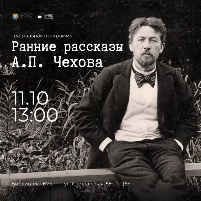 Студенты театрального факультета Института Искусств прочтут избранные рассказы А.П. Чехова из числа его ранних произведений. Событие приурочено к 165-летию со дня рождения писателя.