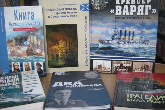 Книги, представленные на выставке, охватывают историю военно-морского флота на протяжении более чем 300 лет. Виктор Катаев в книге «Крейсер «Варяг» рассказывает о легенде русского флота, самом знаменитом корабле Российского флота «Варяге». Через три океана прошел крейсер, принял Тихоокеанскую вахту, побывал в дальних рейдах и вступил в бой в сражении с японской флотилий. Крейсер погиб, но память о нем жива – в песнях, легендах, книгах.