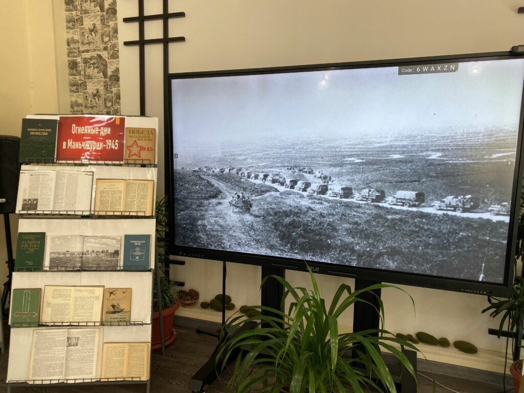 Книжная выставка посвящена 80-летию (1945) со дня начала советско-японской войны (8 августа — 2 сентября 1945г.). На выставке будут представлены: книги и журналы о событиях, документы, статьи из газет, фото — материалы.