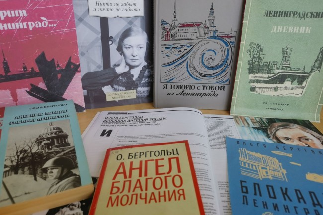 На выставке представлены статья Я. Миркина «Ольга Берггольц. Вспышка дневной звезды» (журнал «Родина», 2023 год, № 3). «Дневные звезды», «Говорит Ленинград» — документальные повести Берггольц о подвиге ленинградцев. «Ангел благого молчания: стихотворения и поэмы».