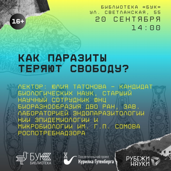 В библиотеке БУК состоится лекция научно-просветительского проекта «Курилка Гутенберга», на которой присутствующие узнают, как трематоды стали паразитами человека и других животных.