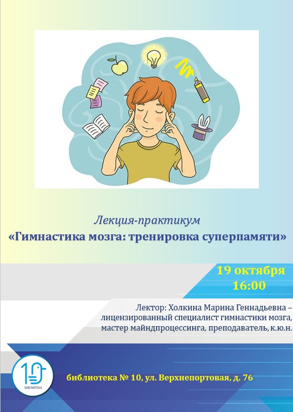 Лектор – Холкина Марина Геннадьевна, лицензированный фасилитатор гимнастики мозга, член МОО «Ассоциация кинезиологии», мастер майндпроцессинга, преподаватель.
