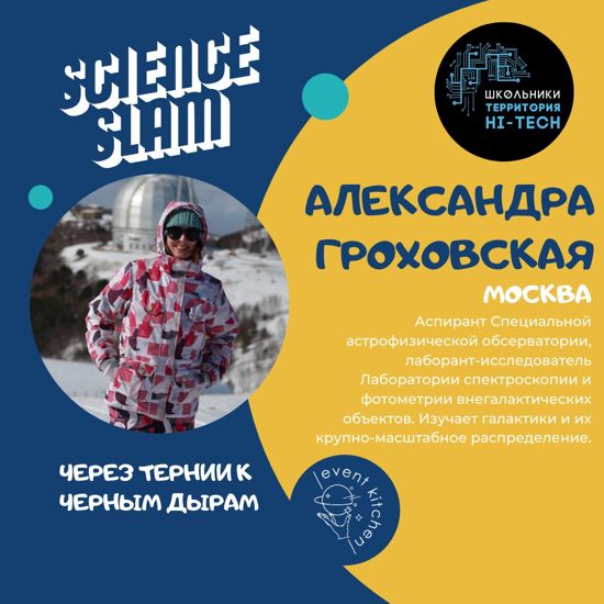 1. Александра Гроховская расскажет, как получить научный кадр на самом большом телескопе в России, а потом с его помощью измерить массу сверхмассивной чёрной дыры в центре галактики.