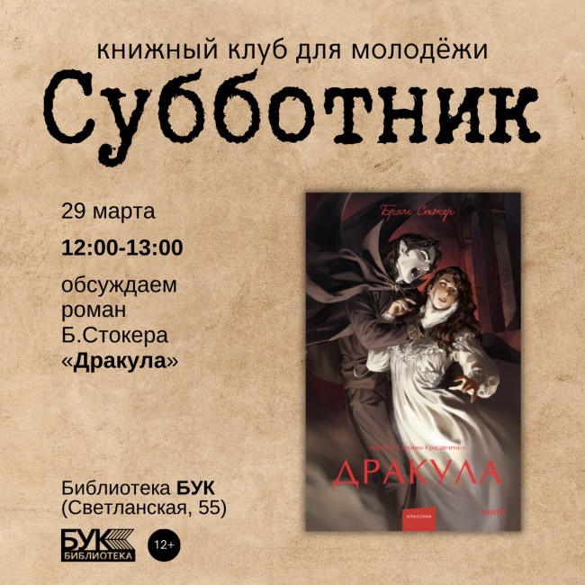На очередной встрече состоится обсуждение романа Брэма Стокера «Дракула».