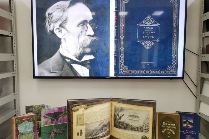 Вниманию посетителей библиотеки будут представлены книги: исторический альбом «Пути великих свершений». Т. 2. (Об экспедиции Р.К. Маака на Амур и Уссури 1855-1859); Г. В. Гуков «Чье имя ты носишь, растение?», А. Хисамутдинов «Terra incognita или Хроника русских путешествий по Приморью и Дальнему Востоку».