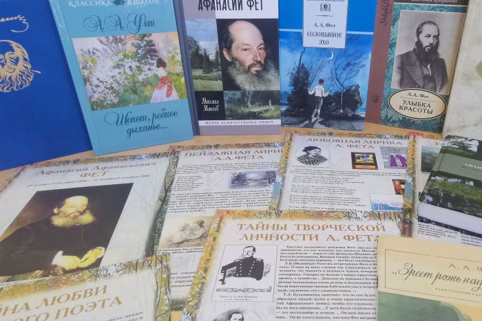 Книжная выставка посвящена 205-летию со дня рождения русского поэта XIX века Афанасия Фета.