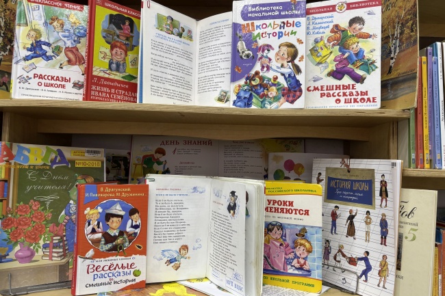 Среди книг, представленных на выставке: «Уроки французского» Валентина «Распутина», «Первый учитель» Чингиза Айтматова, произведения Николая Носова, Якова Акима, Виктора Драгунского, Виктории Ледерман, Андрея Жвалевского и Евгении Пастернак и других писателей и поэтов.