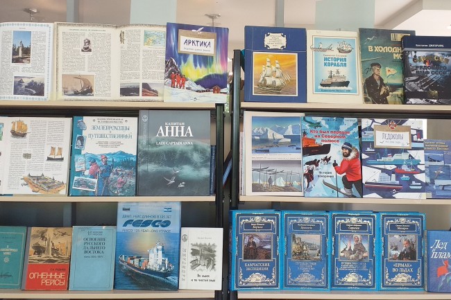 Выставка знакомит читателей с героической историей освоения Северного морского пути и предложенные книги подчеркивают вклад российских исследователей в изучении Арктики.