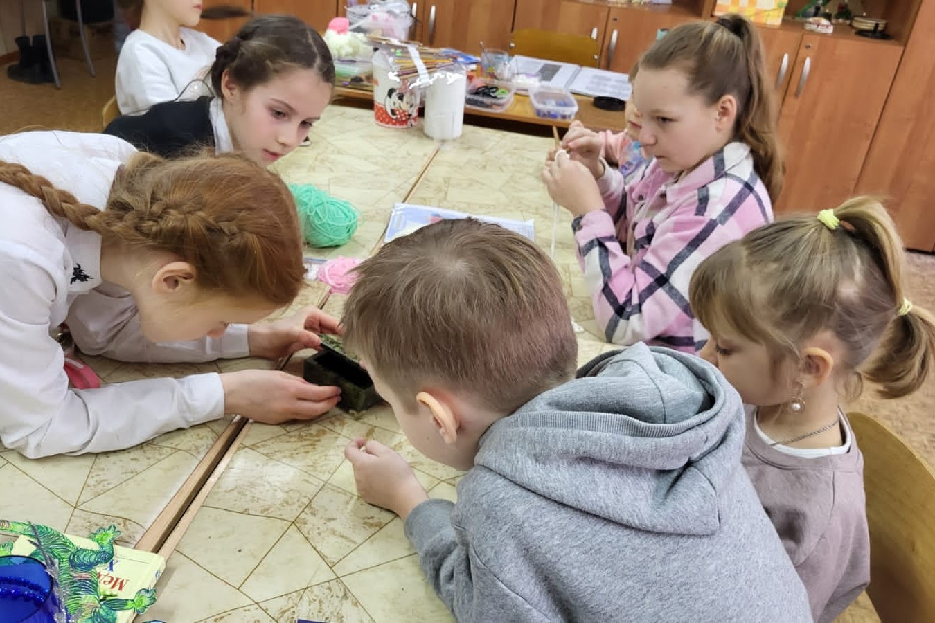 Дети дополняли библиотекаря, рассказав о свойстве малахита, как о мягком камне, из которого можно вырезать любое украшение от сережек до шкатулок, ваз и даже кресла. Ребята приготовили и свой «набор самоцветов» из блестящих фантиков, которые чуточку похожи на камни – самоцветы, которые им показали на презентации «Урал самоцветов».
