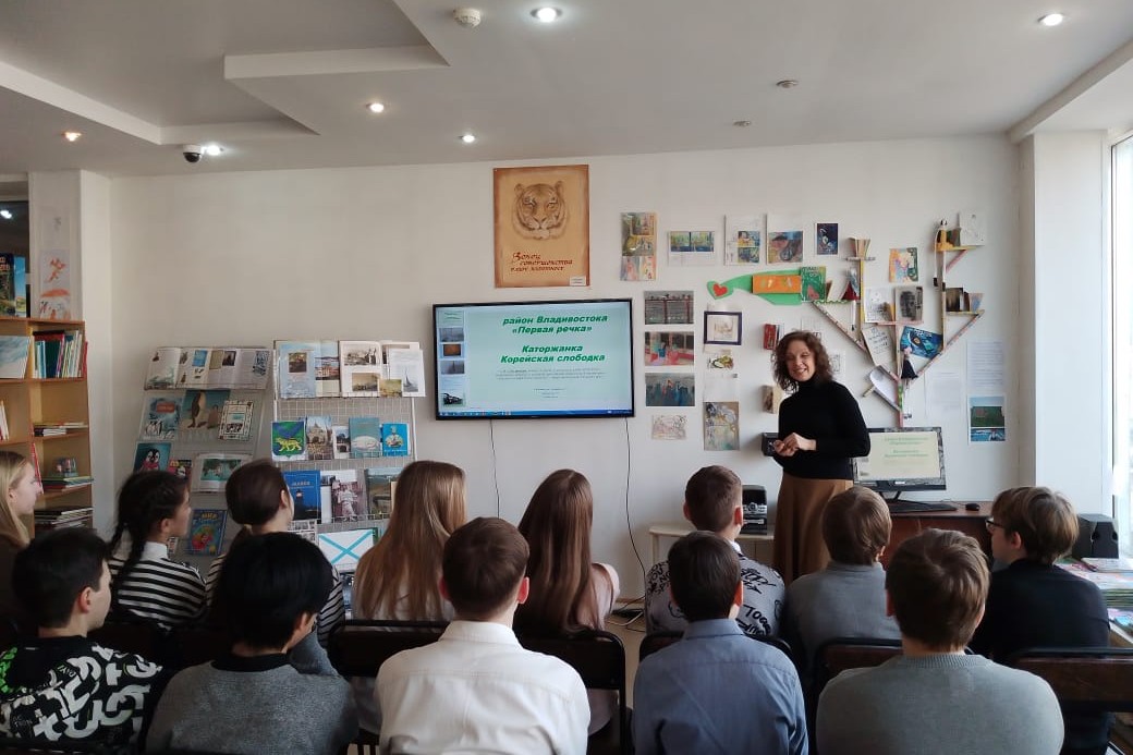30 января библиотека № 3 организовала для учащихся 7 «Б» класса МБОУ СОШ № 17 краеведческий час «Топонимические названия района Первой речки» в рамках программы «Слово о науке». Историк-краевед и руководитель городского клуба «Родовед» Елена Васильевна Соболивская рассказала юным владивостокцам, как появились уникальные топонимические имена родных для них улиц, проспектов и проулков.