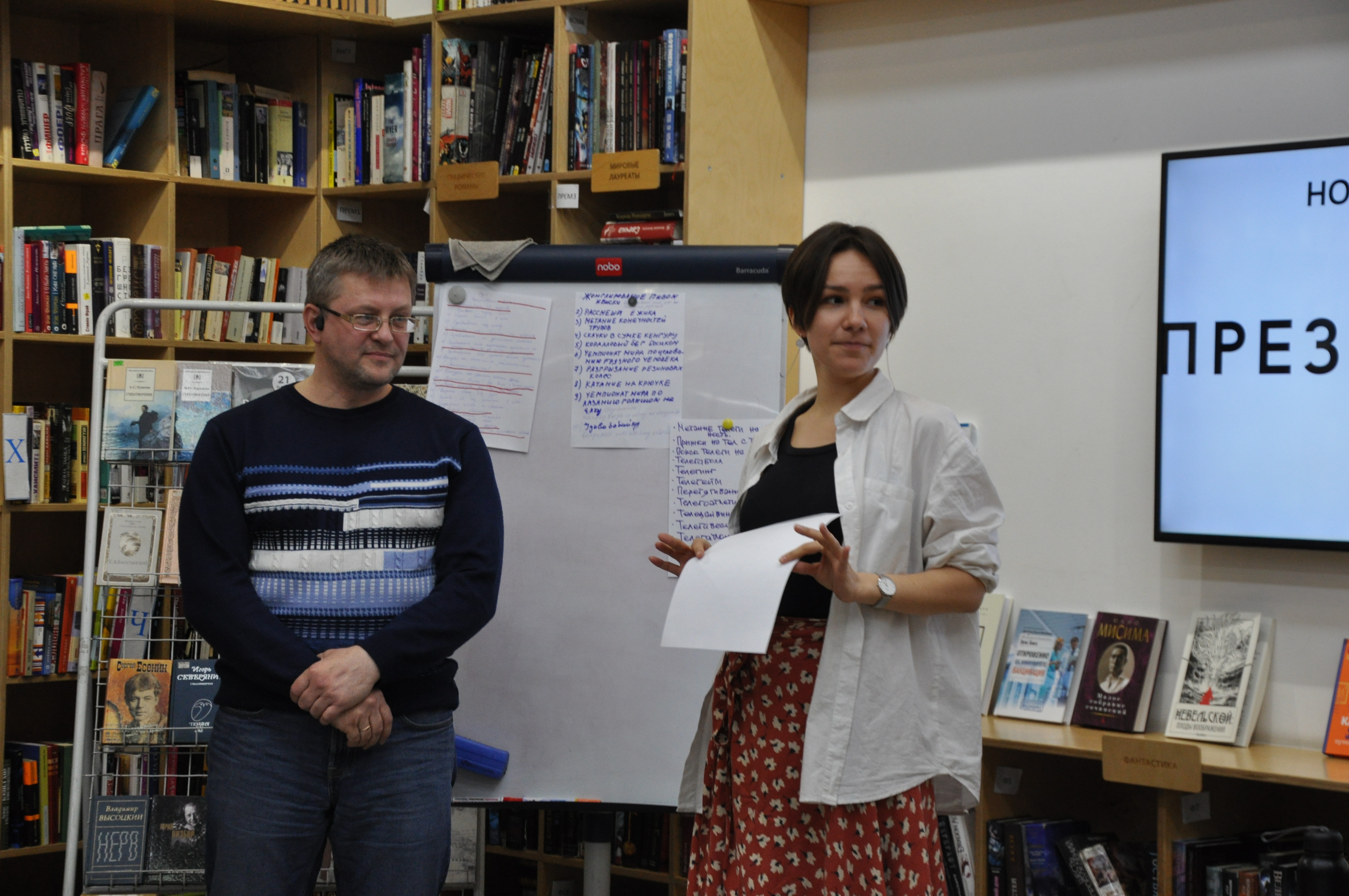 24 марта в библиотеке «БУК» маркетолог Даниил Гайдуков поделился своими знаниями о техниках креативного мышления: латеральный подход, ТРИЗ, метод AIDA, метод «ЗАТО». Каждая идея не только сопровождалась примерами, но и завершалась практическим заданием: в группах гости пробовали применять полученные знания для ответа на вопросы. На первый взгляд абсурдные мысли оборачивались интересными, полезными или смешными идеями.