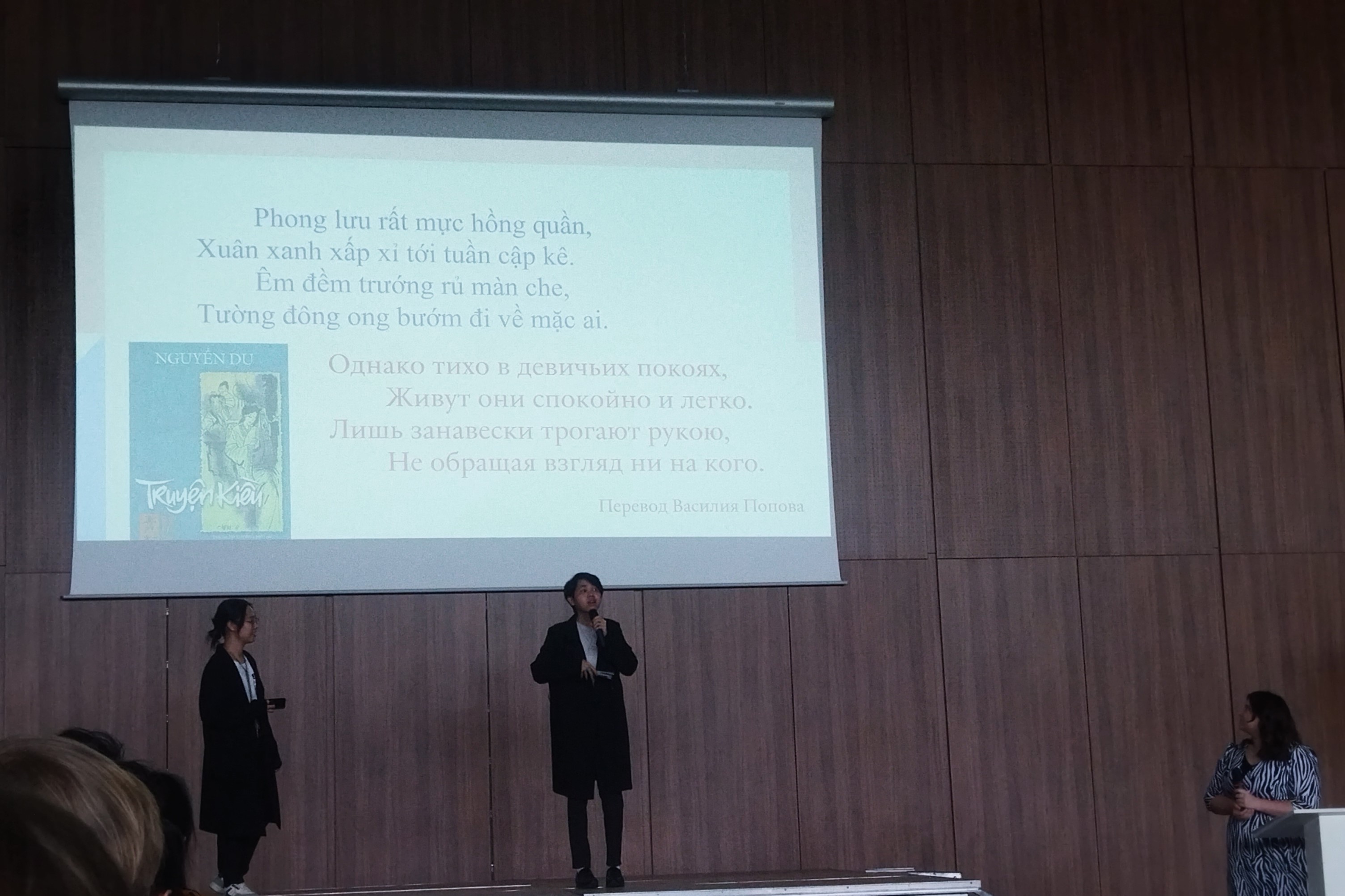 Поделились выступающие и замечательными стихотворениями, знаковыми для их культуры. Студенты из Вьетнама рассказали о поэте Нгуен Зу, который во Вьетнаме так же значим, как и у нас Александр Пушкин, и артистично прочитали отрывок его поэмы в оригинале; представители КНДР продолжили тему Родины трогательным прочтением своих стихотворений. Прозвучало даже стихотворение собственного сочинения от участника Того, исполненное им на французском языке.