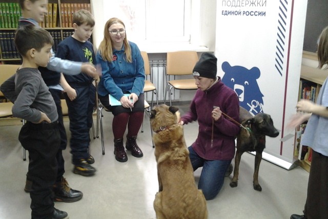 Познавательно-игровой час «Дай лапу, друг» прошел в детской библиотеке №5 (ул. Леонова, 21) 25 марта. Детская библиотека №5 приготовила юным читателям подарок — встречу с дружелюбными четвероногими воспитанниками.
