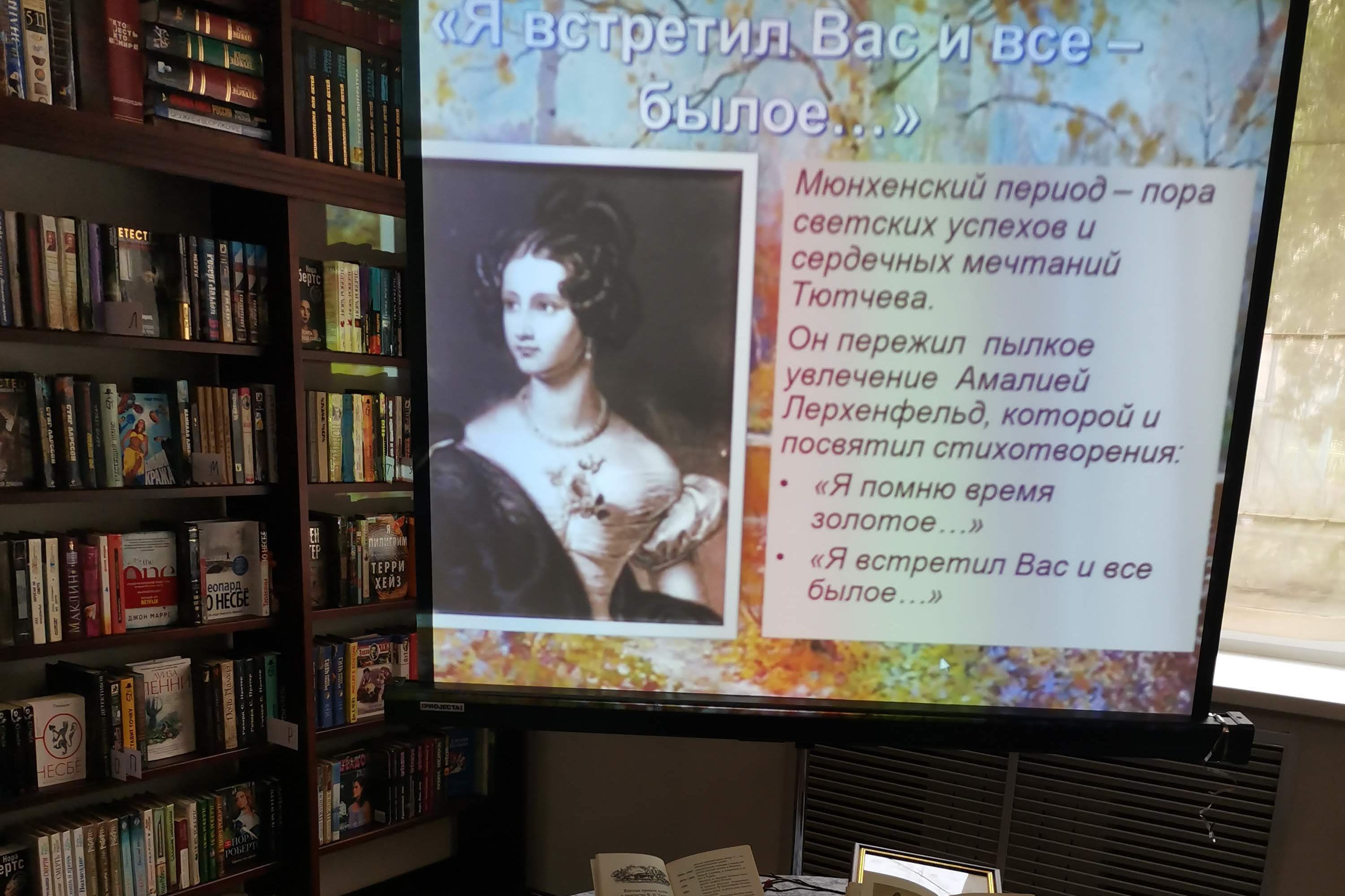 В течение дня читатели могли погрузиться в неповторимую атмосферу лирики Федора Ивановича Тютчева. Для посетителей библиотеки демонстрировались отрывки из художественного фильма «О ты, последняя любовь!», где в полной мере была показана вся трагичность и, вместе с тем, красота и романтизм любви Тютчева и Елены Денисьевой, переданной через стихи поэта из так называемого «Денисьевского цикла».