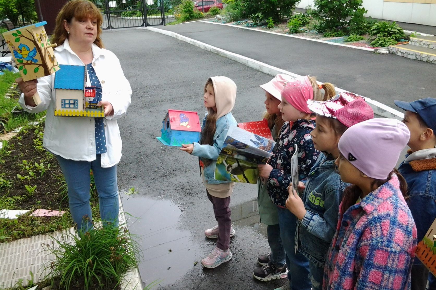 А затем ребята вместе с сотрудниками библиотеки развесили скворечники на территории детского сада в ожидании пернатых домовладельцев. Вот такое маленькое добро для братьев наших меньших совершили ребята, проникнувшись идеей юннатского движения.