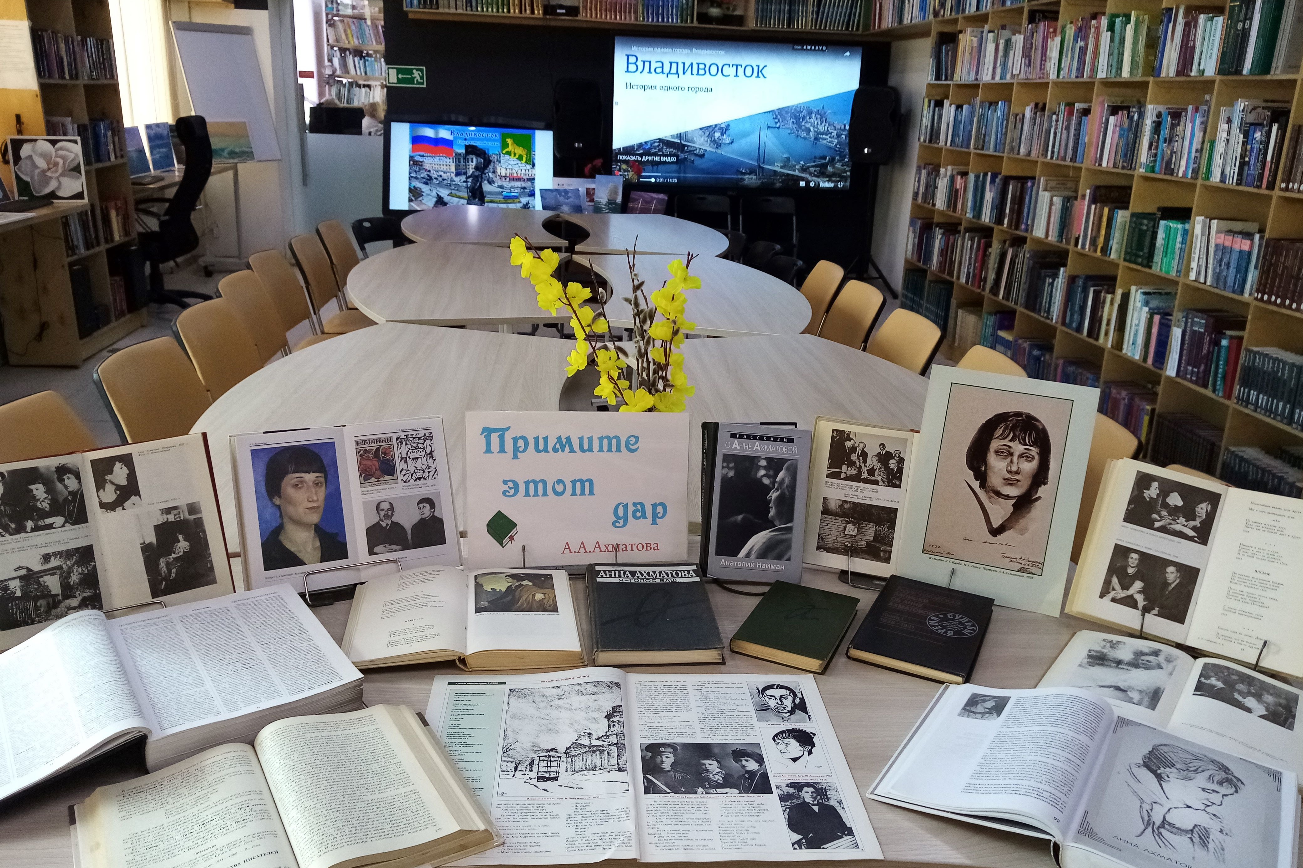 Юбилею Анны Андреевны в библиотеке № 12 посвящена книжная выставка «Примите этот дар». Библиотекари для читателей провели обзор, познакомили с жизнью и творчеством Анны Ахматовой, что позволило им окунуться в мир поэзии и полностью ощутить его глубину и ценность, узнать о прекрасных и трагических событиях жизни Анны Андреевны Ахматовой, о ее гениальных друзьях и истории создания её произведений. На выставке представлены сборники стихов: «Белая стая», «Чётки», «Вечер»; поэмы: «Поэма без героя», «У самого моря»; циклы: «Тайны ремесла», «Реквием».