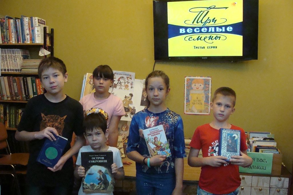 24 и 31 июля киногостиную посетили читатели библиотеки и дети из пришкольного лагеря школы № 14, они посмотрели заключительные серии трилогии «Три веселые смены» по мотивам рассказов Юрия Яковлева, в которых действие также разворачивается в пионерском лагере «Зубрёнок».