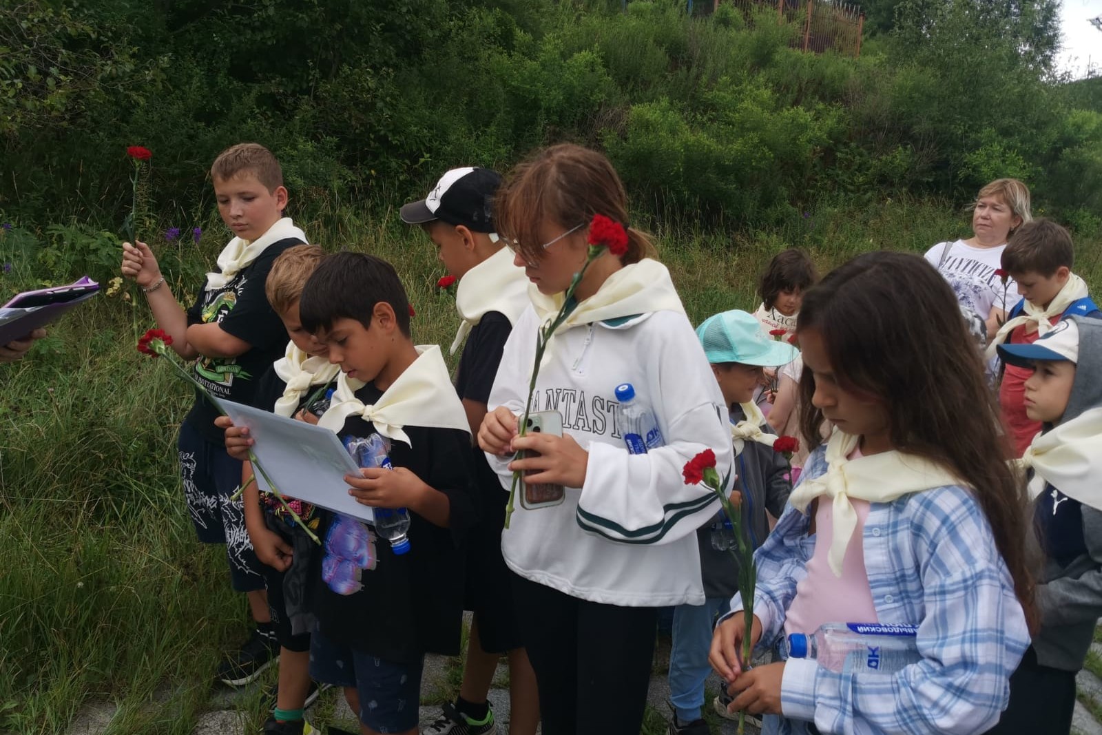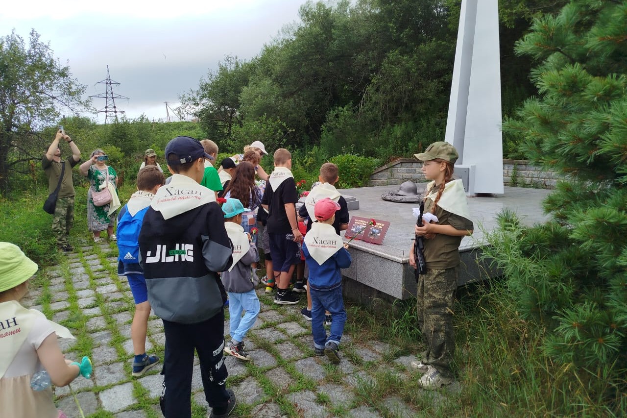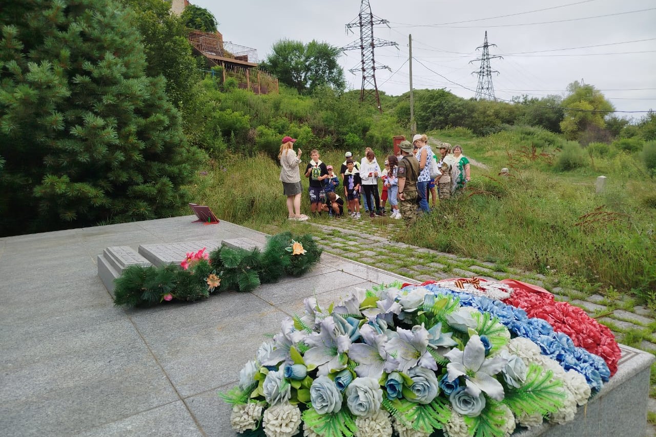 Ребятам подарили памятные галстуки, и, надев их, дети отправились к памятнику «Братская могила командира Красной Армии П.М. Миронова и красноармейцев, погибших в боях с японскими милитаристами», который расположен в районе улицы Крыгина. Многие впервые посетили это историческое место, посвящённое героям Хасанских событий.