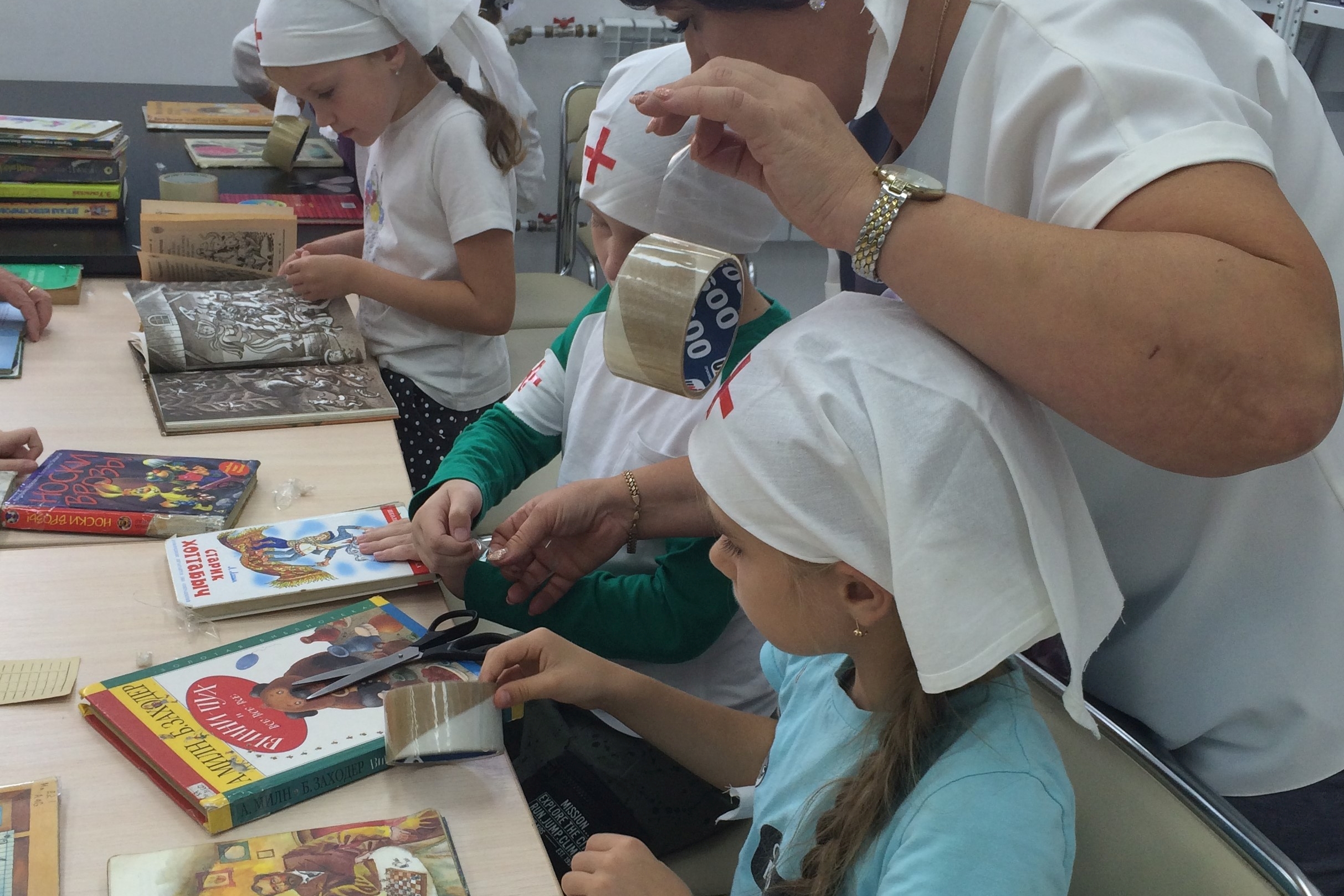 Рваные страницы, переплеты, обложки — все старательно заклеили и стали книги, как новенькие. Дети возмущались и удивлялись: «Как так неаккуратно можно было пользоваться книгой?»