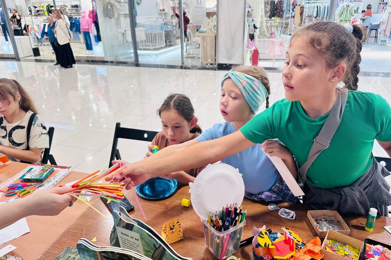 Для маленьких посетителей были предложены разнообразные мастер-классы и творческие активности, посвященные величественным хищникам, известным своей красотой, мощью и грацией. Это и создание бумажных тигров в технике оригами, и закладки «Тигренок». Также ребята мастерили поделки «Блюдце-тигр», используя бумажные тарелочки для своих творений и собирали паззл «Амурский тигр».