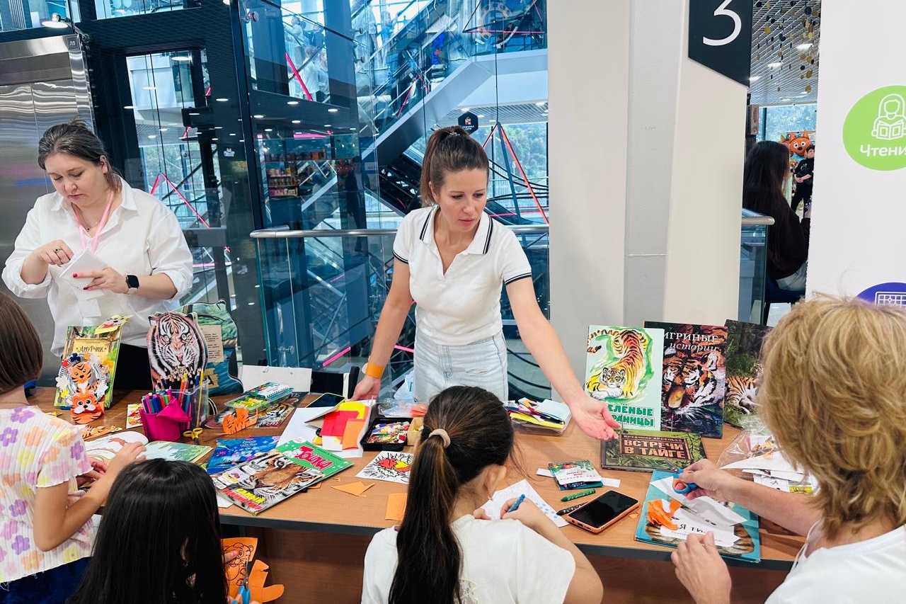 27 сентября в ТРЦ «Черёмушки» и в ТРК «Седанка Сити» занятия на открытой библиотечной площадке МБУК «ВЦБС» были наполнены не только беседами, творчеством и шуршанием страниц, но и шумом воображаемого моря, тигриным рыком и шелестом золотой листвы. Этот день объединил три яркие темы: День тигра, День моря и щедрую осеннюю пору. На столах соседствовали книги о могучих амурских тиграх, таинственных морских глубинах и поэтические сборники об осени.
