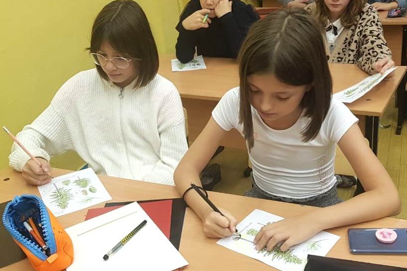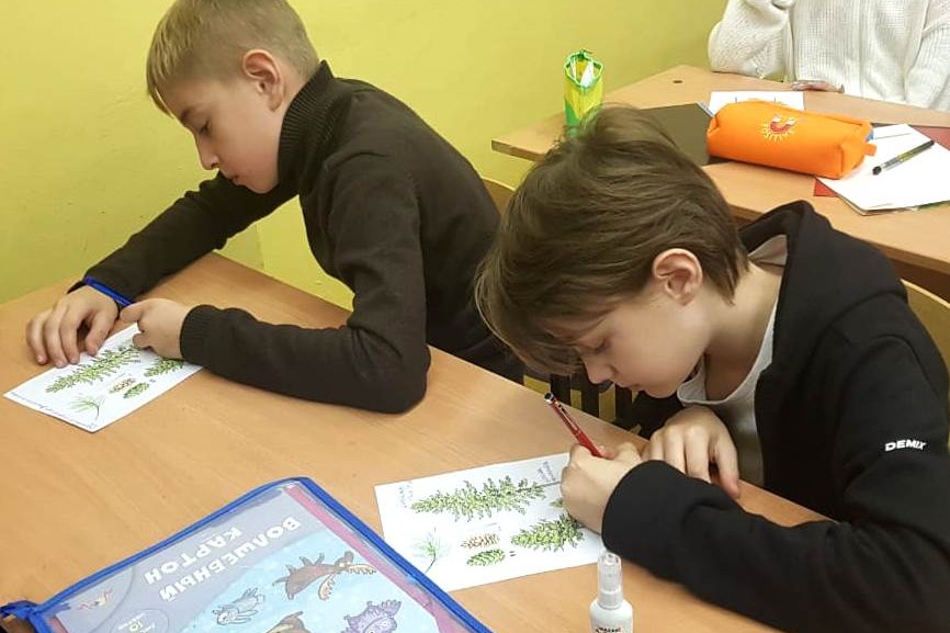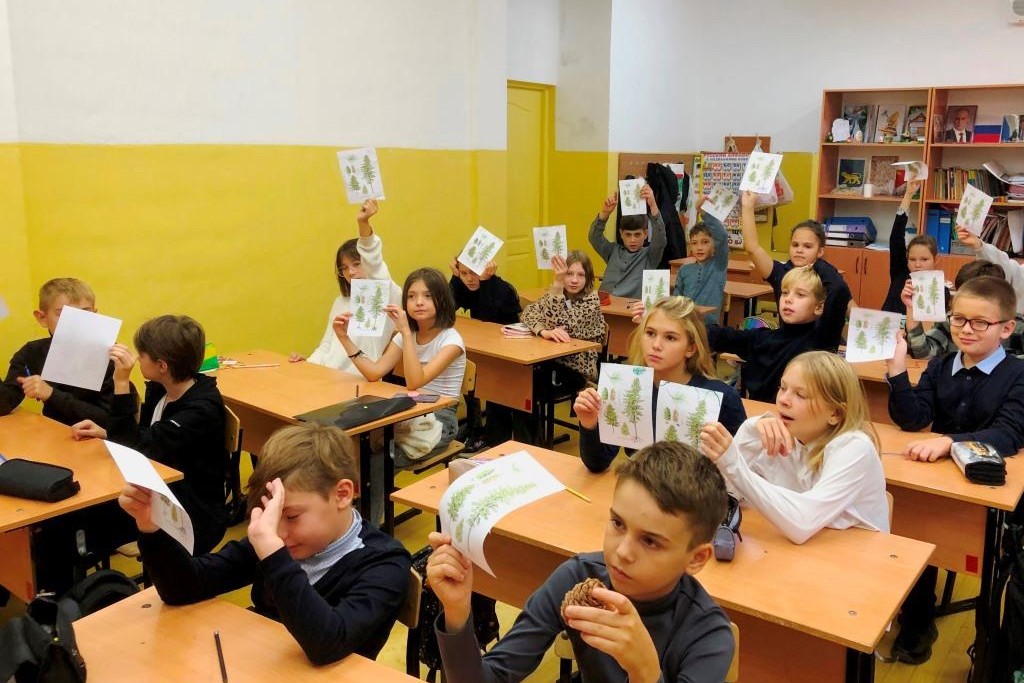 28 октября краеведческие занятия с учениками 4 «Г» и 4 «В» классов МБОУ «СОШ № 80» начались с обобщения и углубления знаний о природных зонах Дальнего Востока, особое внимание было обращено на крупнейший в мире массив хвойно-широколиственных лесов, расположенный на юге Дальнего Востока. Отметили его границы на карте; выяснили, почему эти леса называют тайгой, зачитали цитату о дальневосточных «джунглях» из книги «В дебрях Уссурийского края» выдающегося исследователя этих мест В.К. Арсеньева, чей 150-летний юбилей недавно широко отмечали в нашей стране: «…это девственный и первобытный лес, состоящий из кедра, чёрной берёзы, амурской пихты, ильма, тополя, сибирской ели, маньчжурской липы, даурской лиственницы, ясеня, монгольского дуба, пальмовидного диморфанта, пробкового дерева (с листвой, напоминающей ясень, и красивой пробковой, бархатистой на ощупь, корой), маньчжурского ореха (с крупной, расположенной на концах сучьев пальмообразной листвой) и многих других пород. Подлесок состоит из густых кустарниковых зарослей. Среди них бросаются в глаза: колючий элеутерококк, красноягодник с острыми листьями, лесная калина с белыми цветками, жёлтая жимолость с узловатыми ветвями и с морщинистой корой, лесная таволожка с короткозаострёнными зубчатыми листьями и вьющийся по деревьям лимонник. И всё это перепуталось виноградником, лианами, кишмишем. Стебли последнего достигают иногда толщины в руку».
