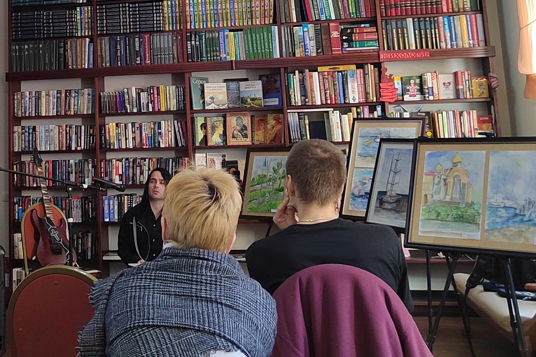 Творческая встреча «В Росчерках Холодной Синевы» с поэтом и музыкантом Сашей Лирэй прошла 23 октября в библиотеке № 10. Поэт представил публике несколько стихотворений из сборников «Чёрное и Белое так близко», «В росчерках холодной Синевы», прочитал несколько очерков из сборника, а главное – поэт представил практически концертную программу – композиции собственного сочинения, поэт и музыкант играет в рок-стиле. Тематике творческой встречи «В Росчерках Холодной Синевы» соответствовали пленэрные зарисовки морских пейзажей. Напомним, в библиотеке № 10 проходит выставка работ «Пленэрные зарисовки» юных художников Детской художественной школы № 1 г. Владивостока.