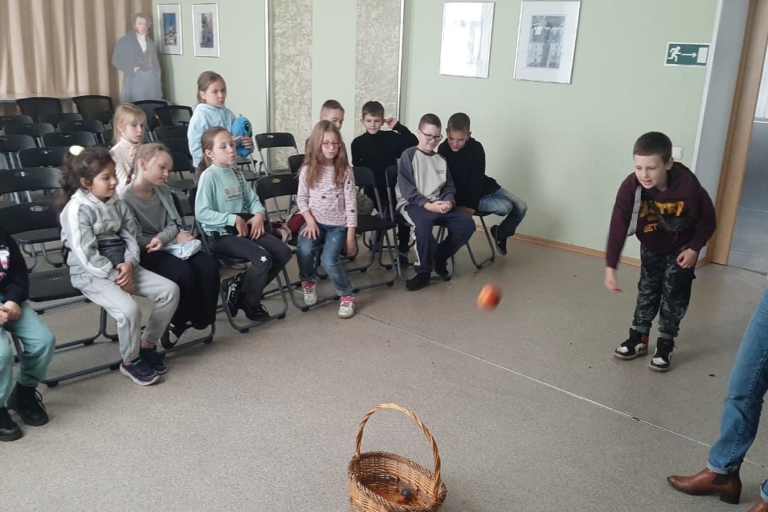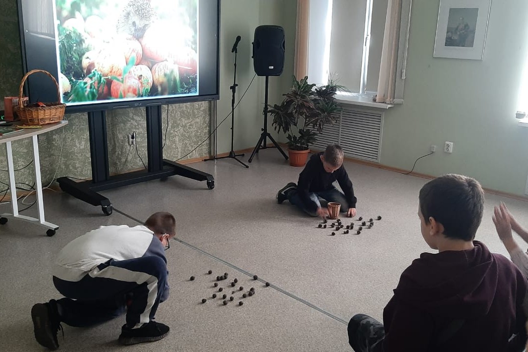Осеннее настроение создал у ребят рассказ о приметах ноября, а веселые игры и конкурсы поддержали в детях азарт. Ребята отгадывали осенние загадки, собирали корзину с урожаем, соревновались в ловкости и скорости, за что получили сладкие призы. По традиции мероприятие завершилось на творческой ноте — юные читатели с удовольствием делали «осенние» закладки.
