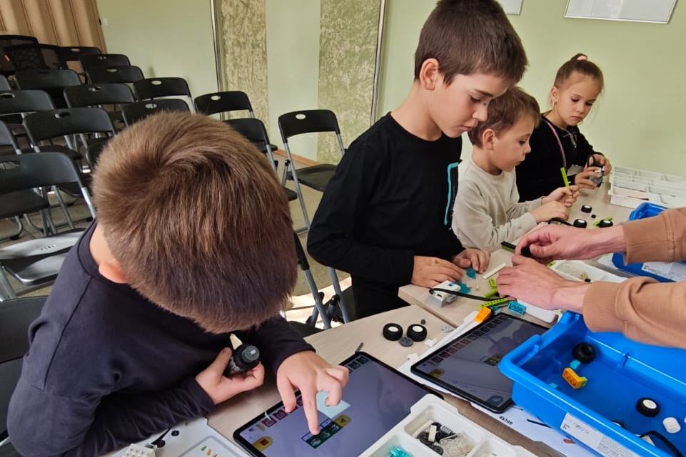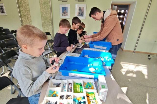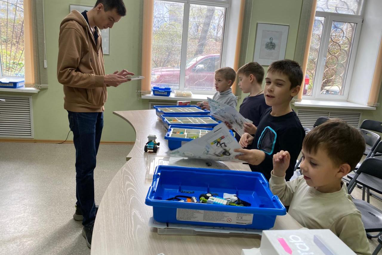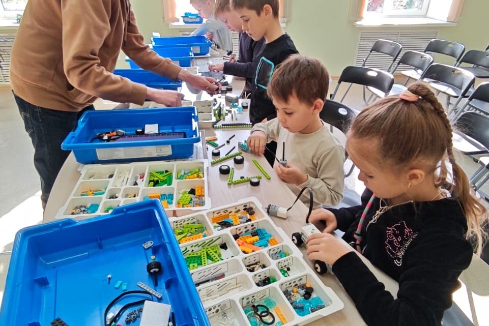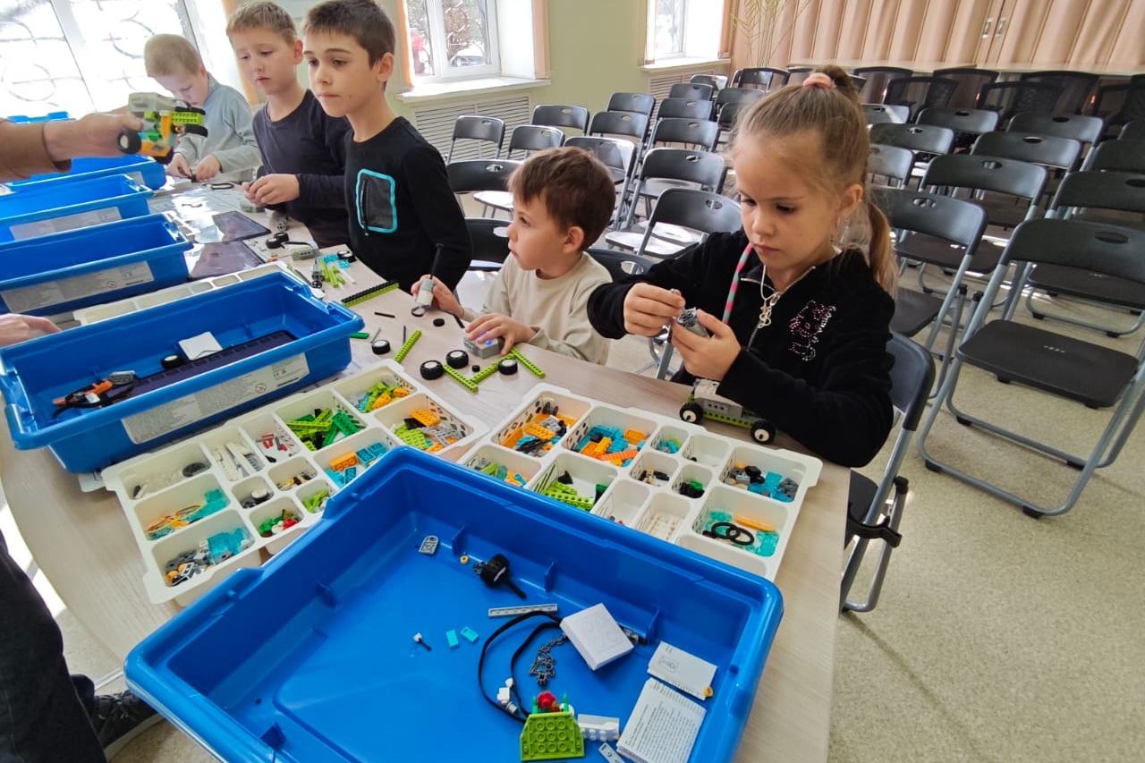 Шахматный квиз сменился очередным занятием по робототехнике. Младшие школьники увлеченно занимаются. На этот раз среди желающих сделать собственный механизм, была девочка, которая опередила мальчишек по скорости выполнения задания.