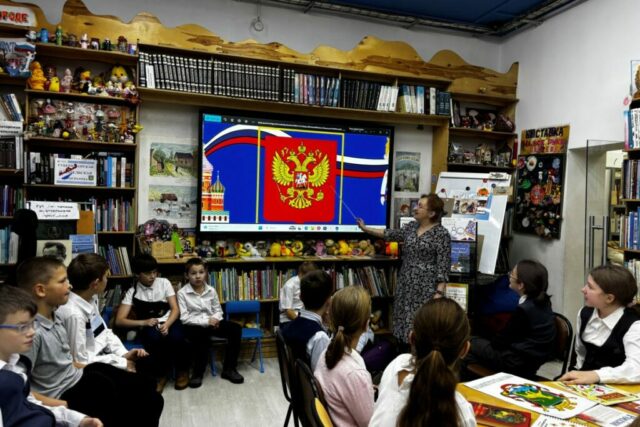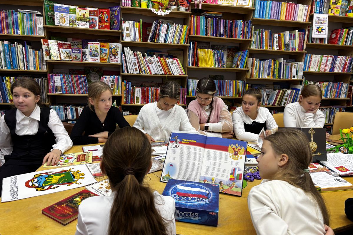 27 ноября детская библиотека № 7 провела для учеников 4 «Д» класса школы №74 познавательный час, который начался с простого вопроса: «Что такое герб и для чего он нужен». История российского герба была представлена как увлекательное путешествие во времени. Ребята узнали о первом символе — всаднике-змееборце (Георгии Победоносце), познакомились с двуглавым орлом, который пришел на Русь более 500 лет назад. На примере иллюстраций дети увидели, как видоизменялся орел: у него появлялись то одна, то три короны, в лапах – скипетр и держава, а на груди – щит с Георгием Победоносцем. Чтобы информация легче запоминалась, разобрались все вместе, что символизирует двуглавый орел, три короны, скипетр и держава, всадник, поражающий змея, что вызвало у ребят особый интерес. А книга Риммы Алдониной серии «Настя и Никита» про гербы дополнила эти сведения.