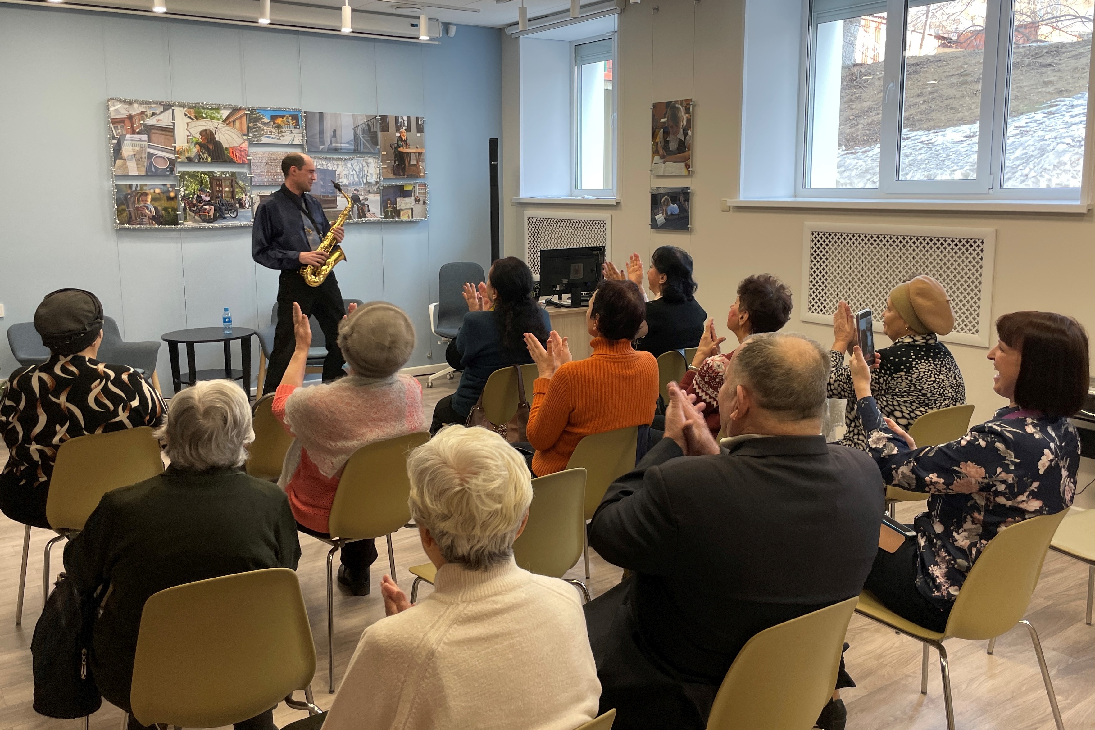 Слушать красивую музыку на саксофоне можно в любом возрасте. А музыка веселая и нежная, тихая и громкая, звучала, и сердца зрителей таяли, таяли. Ну кто же не любит мелодии из фильмов «Шервудские зонтики» и «Эммануэль», из репертуара Тины Тернер, Барбары Стрейзанд и Аллы Пугачевой, а от веселого рок-н-рола ноги сами идут в пляс! Зрители долго не отпускали гостей.