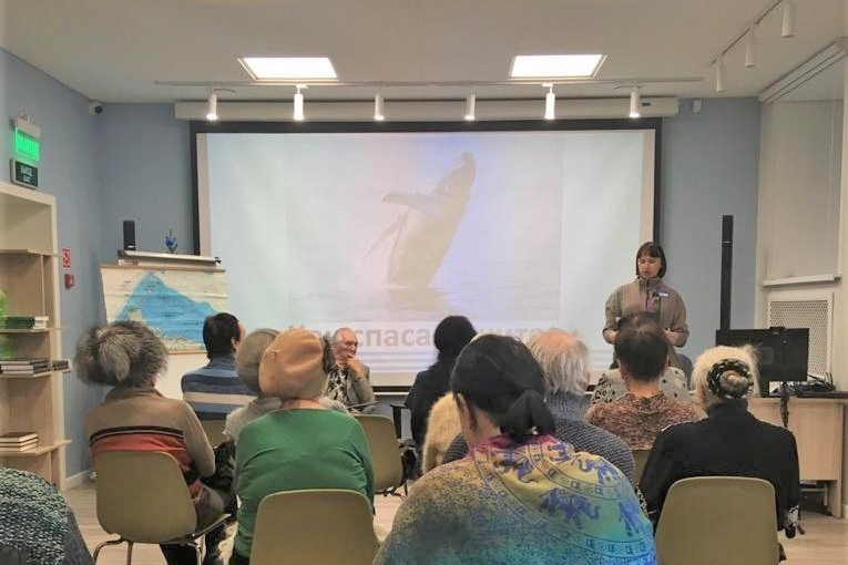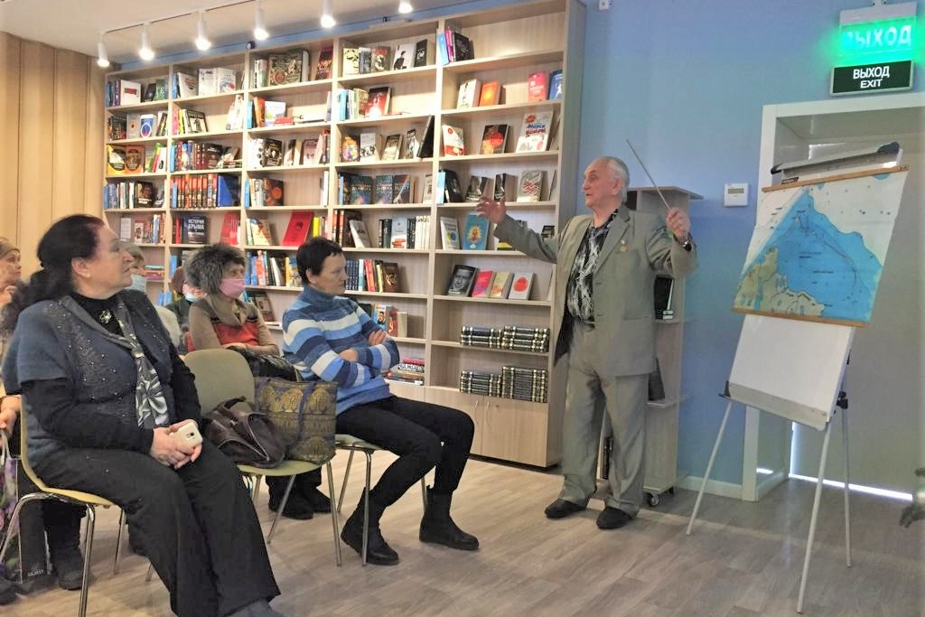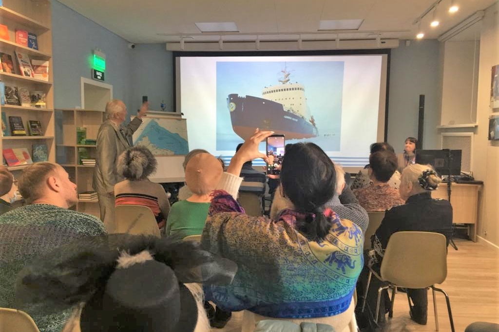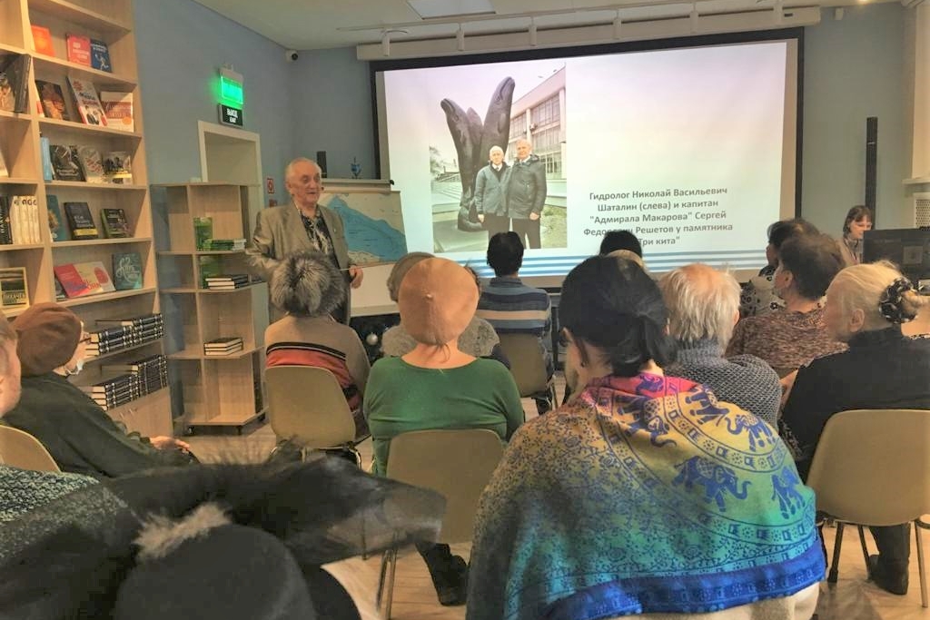 В Центральной библиотеке им. А.П. Чехова состоялась встреча с Владимиром Владимировичем Морозом. Читатели библиотеки знакомы с ним, как с исполнителем романсов на библиотечных музыкальных мероприятиях. Но, оказывается, Владимир Владимирович в былые годы, с 1982 по 1989 гг. был первым помощником капитана ледокола «Адмирал Макаров», того самого, который в октябре 1988 года участвовал в международной операции по спасению семьи серых китов, попавших в ледовую ловушку на Аляске. Именно этому событию и была посвящена встреча.