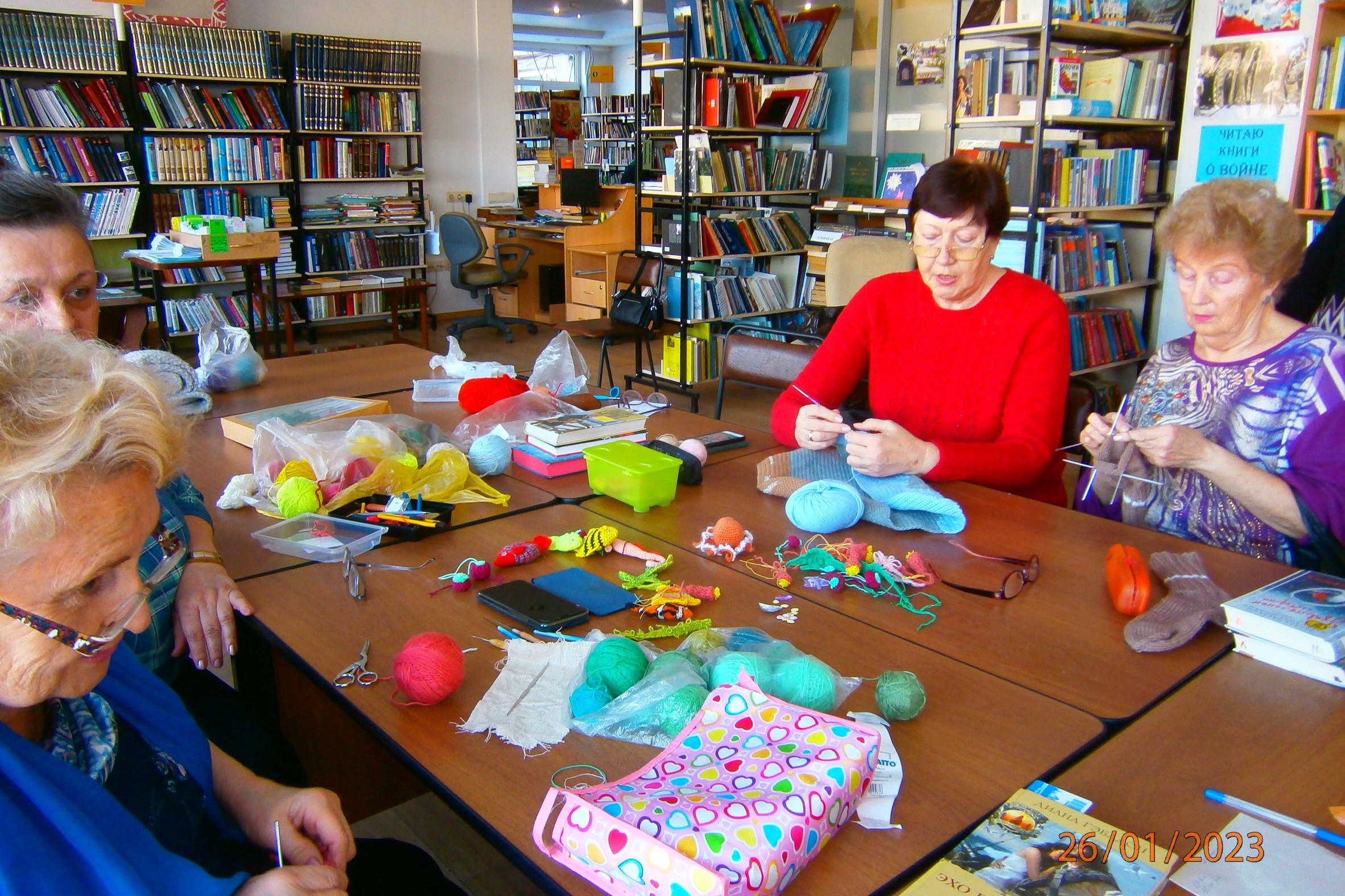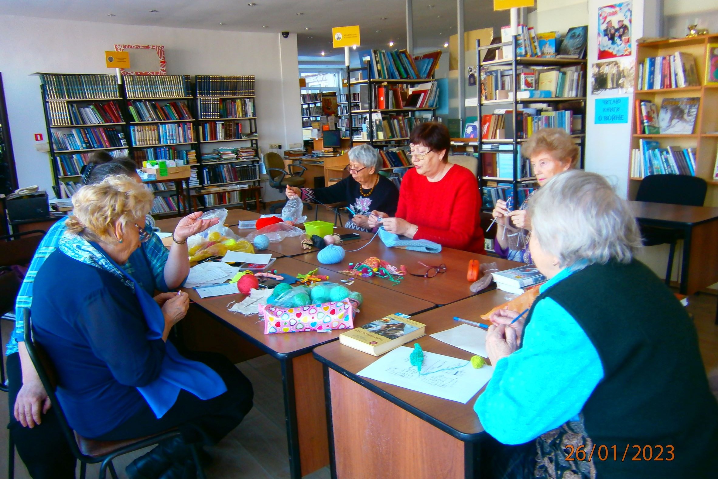 26 января в библиотеке № 3 состоялась очередная встреча творческой мастерской «Руками вышитое чудо» для читателей старшего возраста. Большое панно, вязанное крючком – вот на что решились рукодельницы. Темой панно стала морская тематика. Этой совместной работой было решено отметить предстоящий юбилей кружка. Одна из участниц, Татьяна Егоровна, подготовила основу, на которую завязались представители моря – рыба-клоун, осьминог, водоросли, коралловые полипы (шаровидные и трубчатые). Панно получилось большим и красочным.