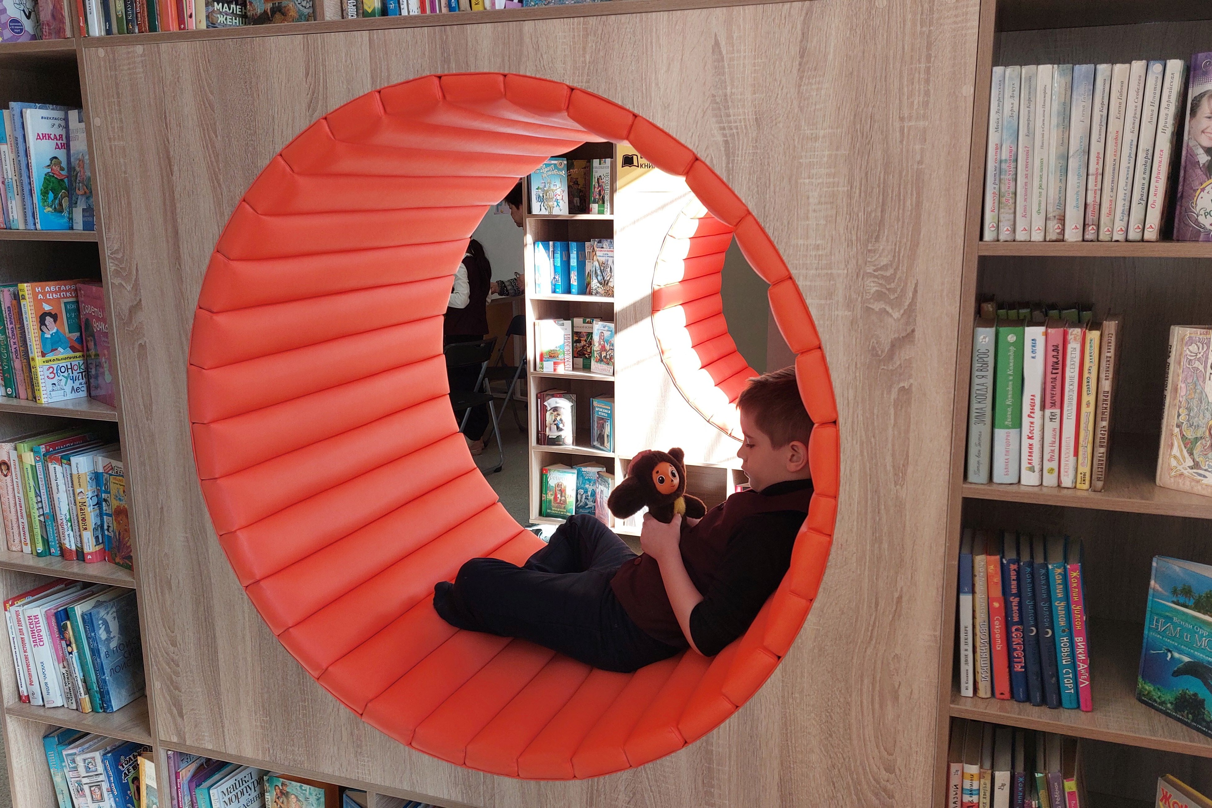 Периодически творческий порыв сменяется азартом и тогда приходит очередь разнообразных настольных игр, которых появилось в библиотеке в достаточном количестве. А можно просто удобно устроиться в необычном книжном стеллаже с любимой книгой или игрушкой.