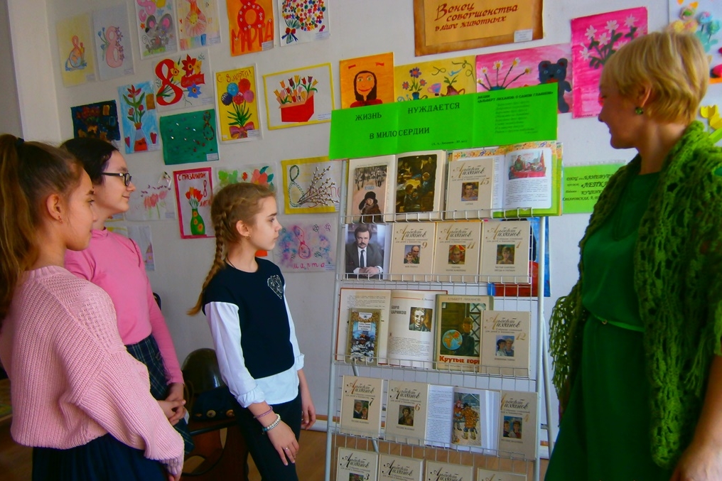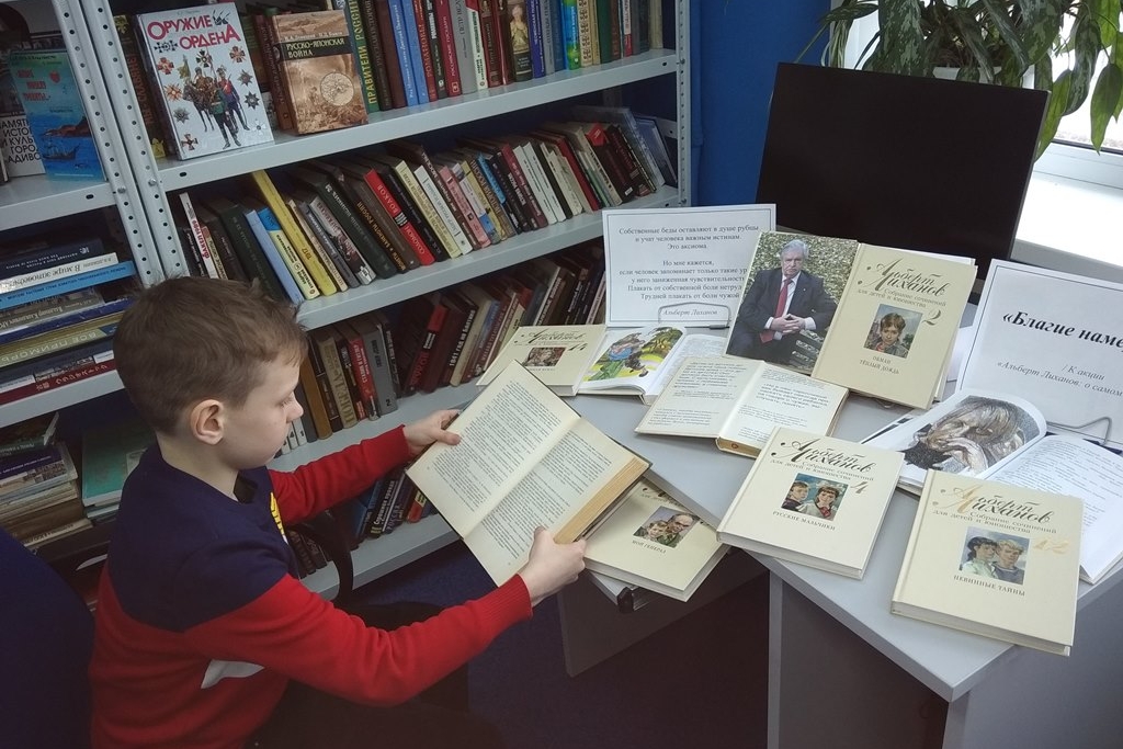 Библиотека № 17 представила юным читателям книги Альберта Лиханова на книжной выставке «Благие намерения». Школьники читают книги писателя, говорящего о проблеме нравственных ценностей на языке, понятном современным подросткам.