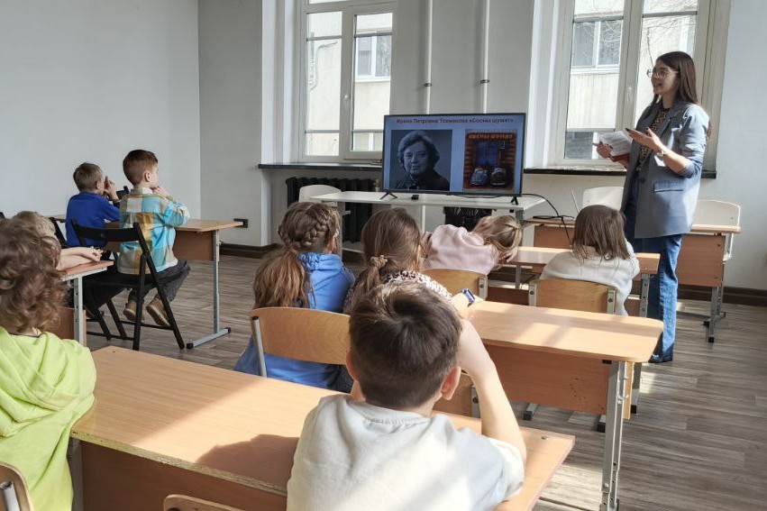 Сотрудники библиотеки № 1 имени А.С. Пушкина провели 27 марта интерактивные чтения с первоклассниками Школы развития робототехники и выбрали для разбора и чтения повесть Ирины Токмаковой «Сосны шумят».