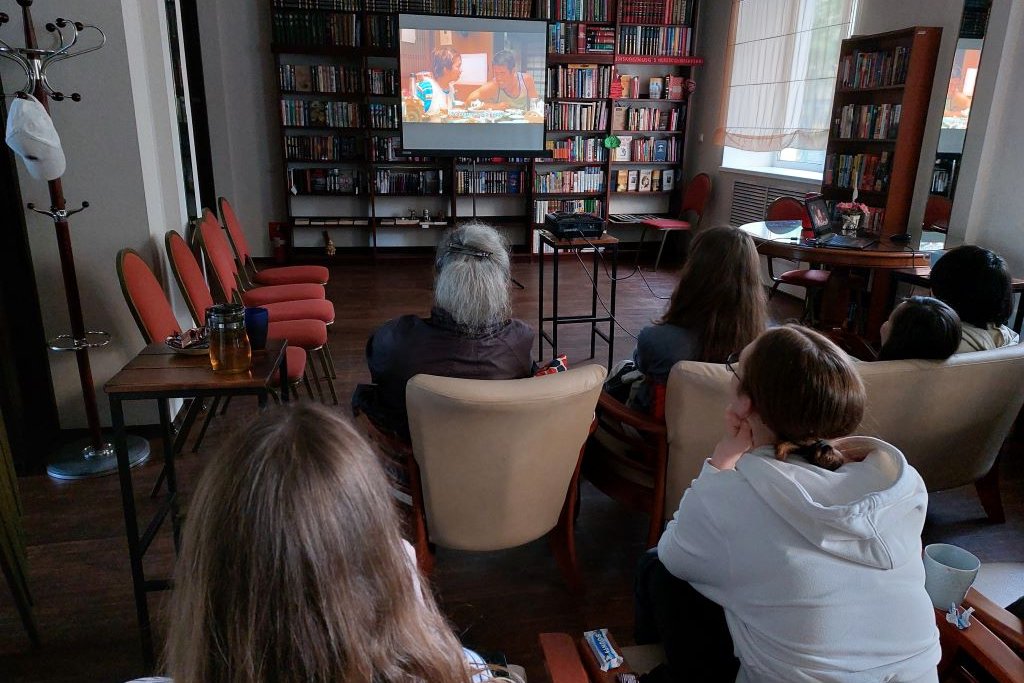 Далее гости библиотеки в камерной обстановке смотрели и обсуждали фрагменты японского фильма «Работа в лесу» (2014). Фильм снят по книге Миура Сион «Предгорья Камусари». В фильме очень красочно отображены некоторые дошедшие из глубины веков традиции японского народа, до сих пор сохранившиеся в некоторых регионах в виде фестивалей «мацури».