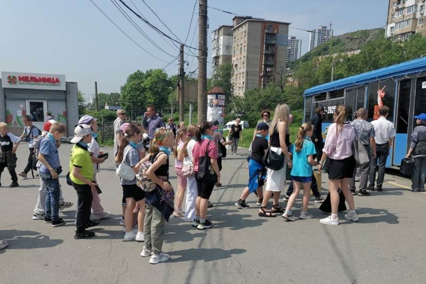 Библиотекари вместе с ребятами из пришкольного лагеря МБОУ СОШ № 47, следуя по маршруту трамвая № 6, от остановки к остановке, разыскивали на городском пространстве, прилегающем к трамвайному маршруту, объекты старого города, знакомились с историей их создания по книгам известных приморских краеведов, писателей и поэтов, участвовали в викторине «Знаете ли, вы?».