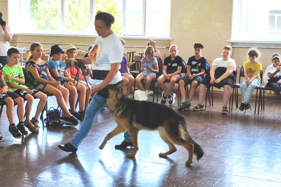 28 июля библиотека № 20 организовала встречу детей из пришкольного лагеря школы №7 с кинологами МСКЦ «Фаворит» Натальей Смирновой и ее воспитанницей, немецкой овчаркой Лучианой, а также с Ольгой Галкиной и ее воспитанником Вольтом породы вольф-шпиц. Дети узнали о тонкостях владения собакой, о том, как важно понимать, что собака также нуждается в личном пространстве, в отдыхе. Уточнили правила обращения с собакой: не забирать у собаки любимую игрушку; не приставать к собаке, когда она спит или ест; не приближаться к большим собакам охранных пород, а также обсудили многие другие аспекты поведения в общении с друзьями нашими меньшими. Затем Наталья и семимесячная Лучиана показали навыки работы кинолога и собаки в паре, а Ольга и четырехлетний Вольт продемонстрировали танцевальный номер по дисциплине «Фристайл – танцы с собаками».