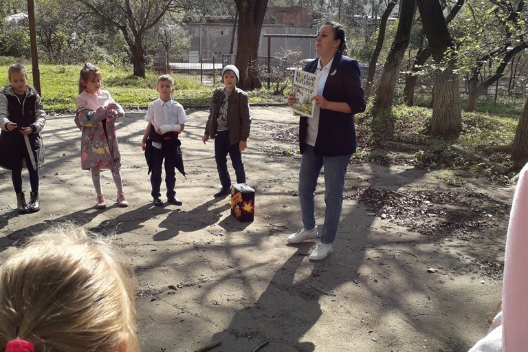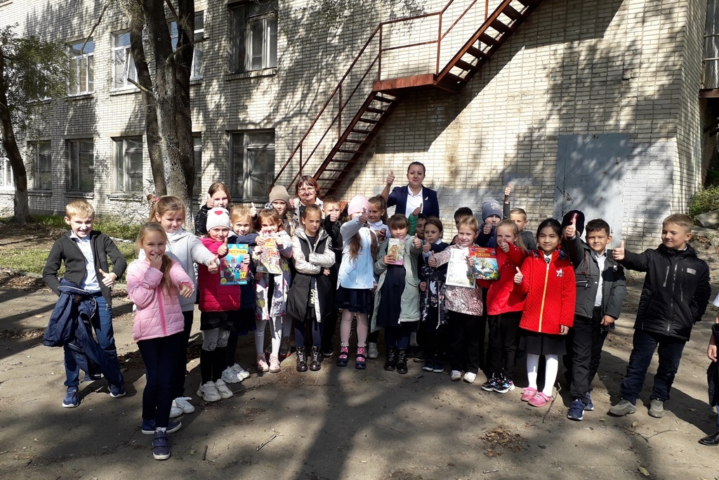 В первый день октября библиотека № 4 отправилась в гости к учащимся 2 «Б» класса «СОШ № 14». На свежем воздухе вспомнили историю появления и развития библиотек в мире, и на чём в древности делали первые записи. Учитель начальных классов — Елисеева Татьяна Семёновна отлично подготовила детей к встрече, и ребята со знанием отвечали на сложные вопросы, получая в подарок за правильные ответы аплодисменты.