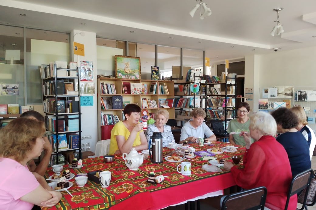 Эту детскую любовь она и перенесла на страницы своей пьесы для детей. Ольга Николаевна рассказала, как она собирала материал о жизни героини, гуляла по ее любимым местам, общалась с сотрудниками музея МГУ. Она спела свои песни, написанные к пьесе. Вместе с читателями за чаем, спели памятные песни, побеседовали об истории Куперовской пади и красоте родного района.