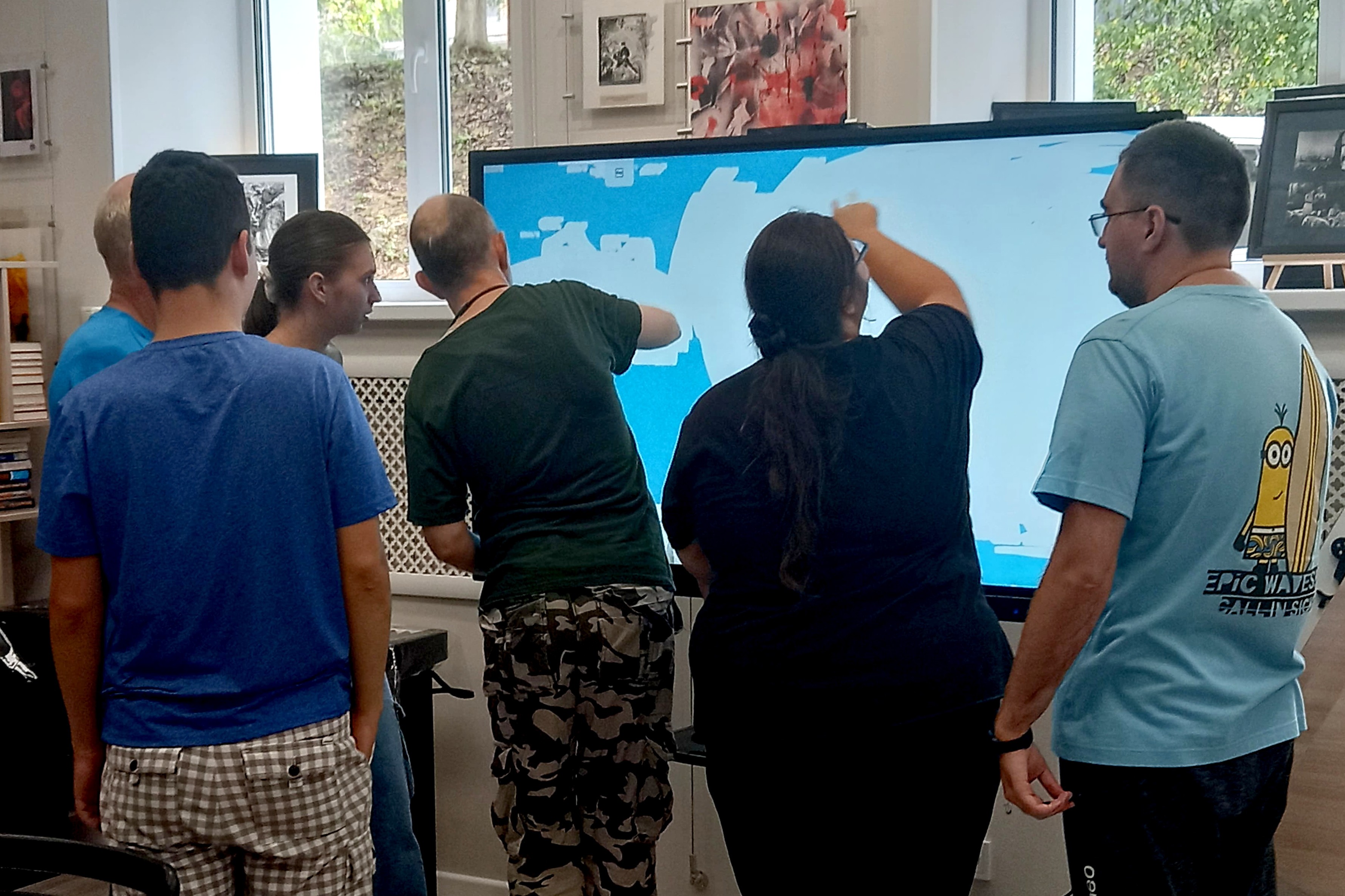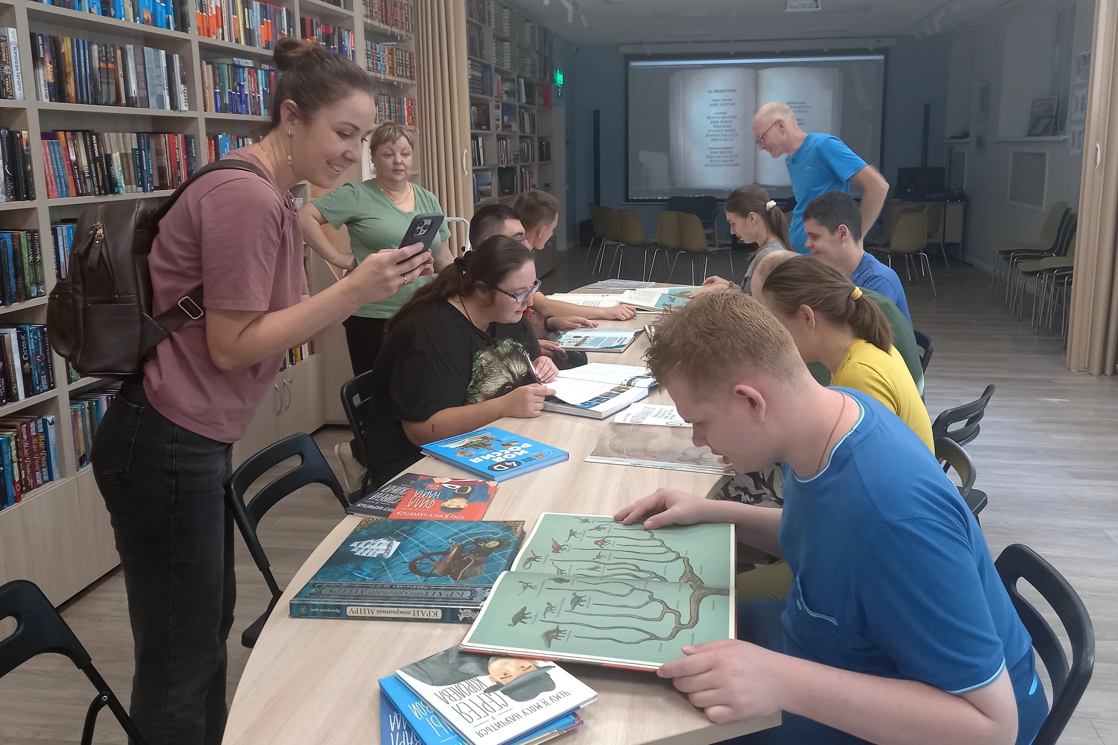 27 сентября на экскурсию по модельной по библиотеке пришли подопечные Центра социальной реабилитации для людей с ограниченными возможностями здоровья «Солнечный мир». Сотрудник библиотеки Маргарита Карпеченко рассказала им, как пользоваться станцией самообслуживания и УФ-стерилизатором, провела по всему пространству, посвящая в работу современного библиотекаря. Гости библиотеки с интересом посмотрели музыкальный мультфильм про хранителя книг на большом экране, увлеченно рассматривали большие красочные книги и под финал долго не могли оторваться от интерактивной панели, на сенсорном экране которой можно рисовать.