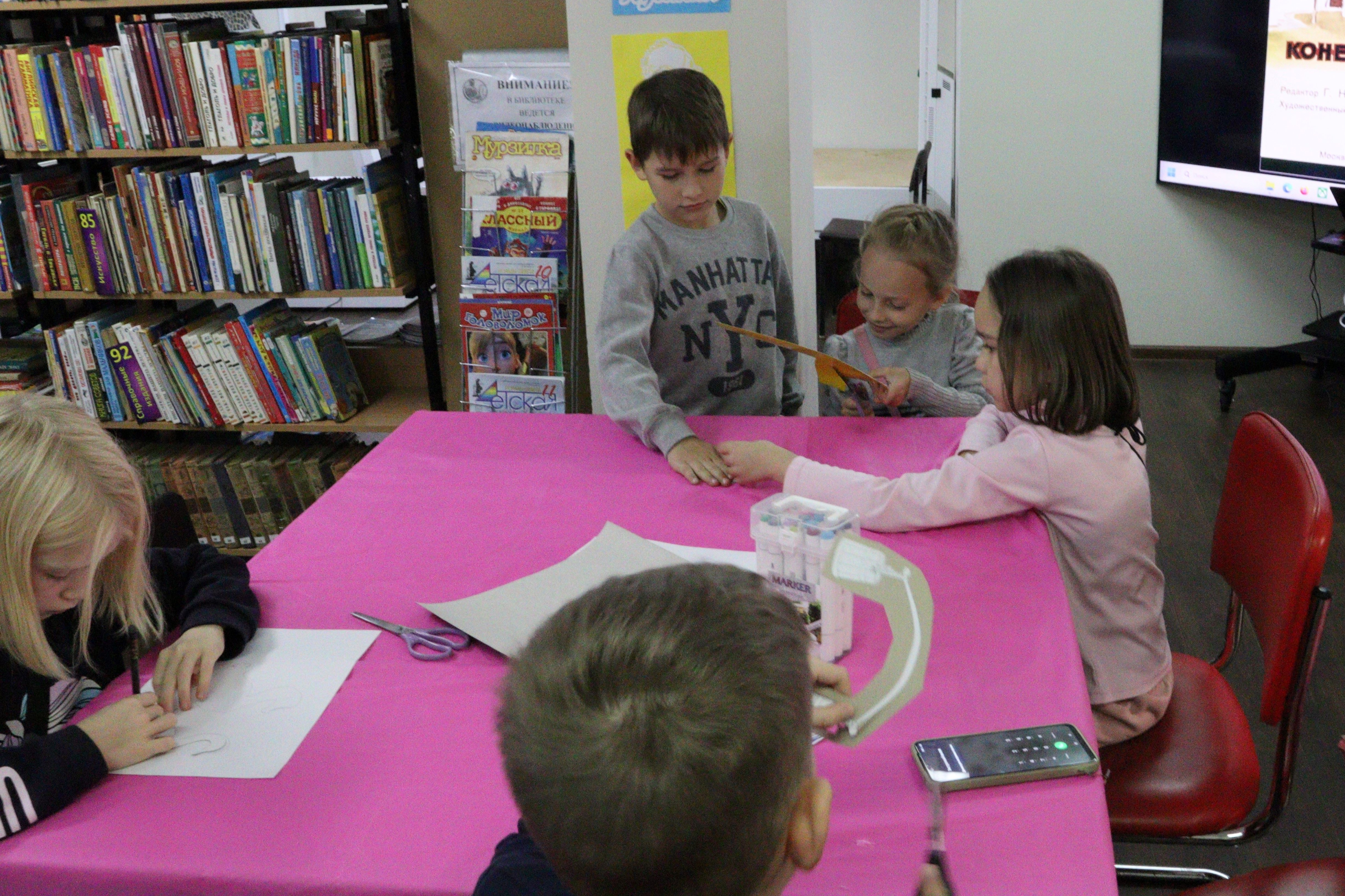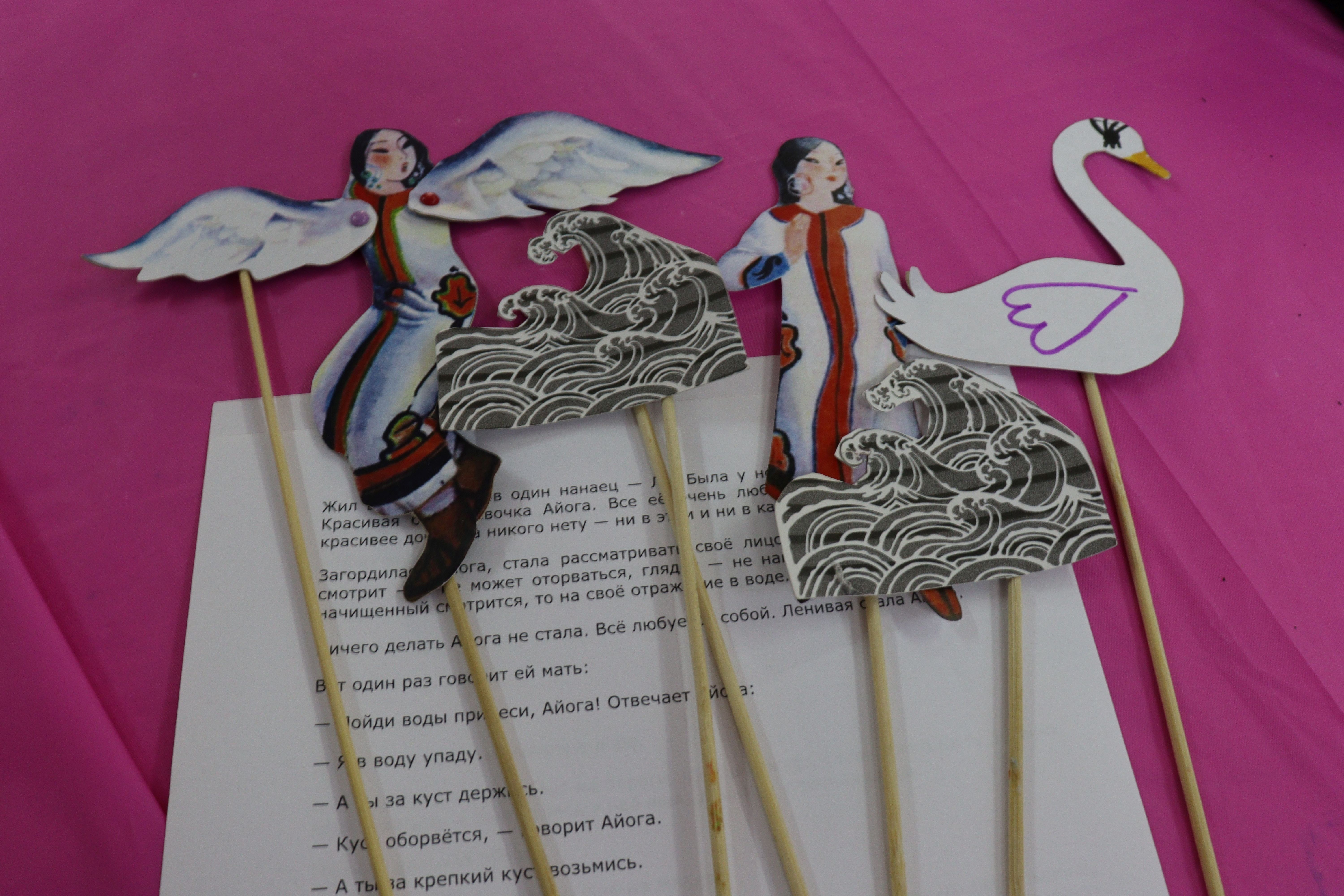 Ребята прочитали по ролям замечательную нанайскую народную сказку «Айога», после чтения обсудили характер и поведение главной героини, к чему привёл её поступок. Затем ребята принялись создавать кукол-марионеток для представления в библиотечном театре теней.