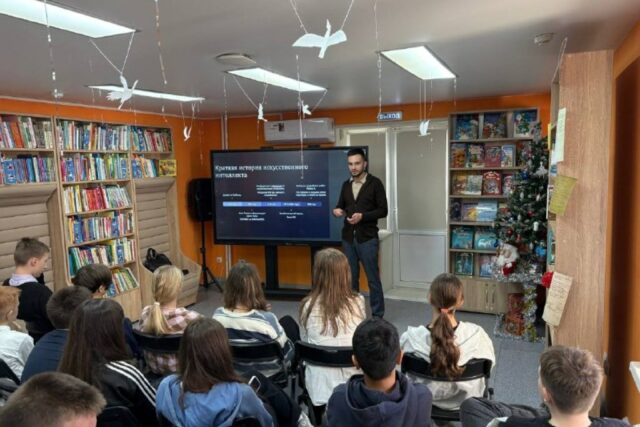 Также в ходе беседы обсудили со школьниками вопросы рационального использования ИИ – на примерах из жизни Всеволод показал, что, к сожалению, искусственный интеллект некоторым людям полностью заменяет живое общение, что приводит к нежелательным последствиям. Отрадно, что некоторые ребята выразили готовность помочь одному из героев рассказа, став так называемыми «цифровыми волонтерами». Подводя итог сегодняшнего мероприятия, можно сказать, что знания подростков в области применения искусственного интеллекта сегодня пополнились новой информацией.