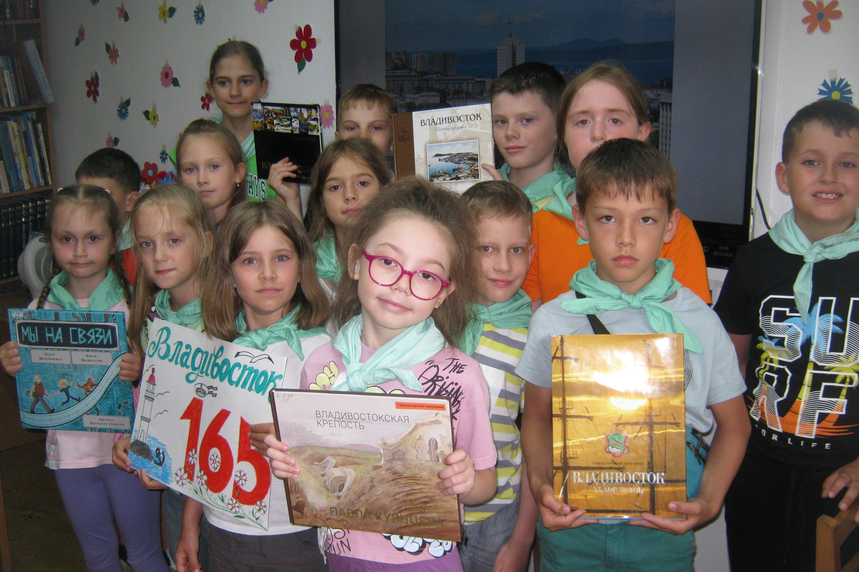 1 июля ребята из пришкольных лагеря СОШ №50 в библиотеке № 12 (ул. Калинина, 281) приняли участие в литературном часе «Ты приморская столица, легендарный город мой!». Об истории родного города узнали ребята из рассказа библиотекаря, посмотрели увлекательную презентацию, вспомнили любимые уголки города. Активно отвечали на вопросы викторины, с интересом рассматривали книги и альбомы о Владивостоке.
